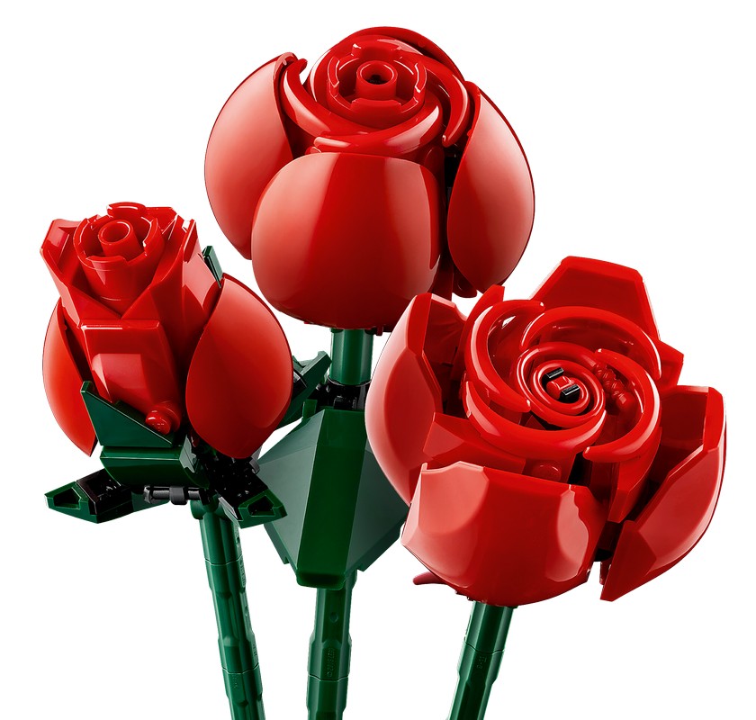 - Распускающиеся бутоны – В наборе для создания букета роз LEGO® Icons изображены розы, снятые на разных стадиях цветения, в том числе 4 розы в полном цвету, 4 распускающиеся и 4 в бутоне.