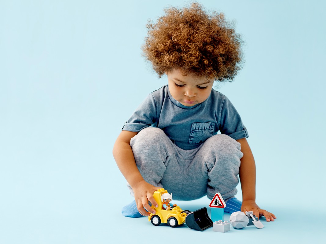 - В бульдозер можно посадить любого персонажа из коллекции LEGO DUPLO.