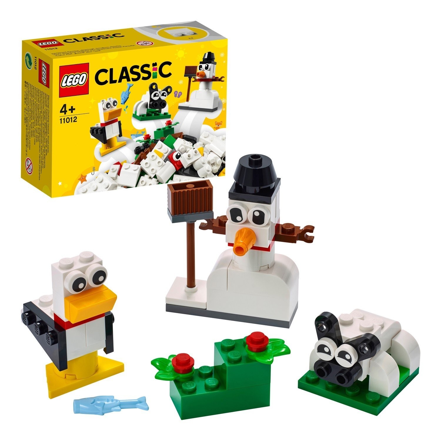 - Классический набор белых кубиков LEGO (11012) предназначен для детей от четырёх лет. Он включает три простые модели и даёт множество возможностей для развития воображения и творческих способностей.