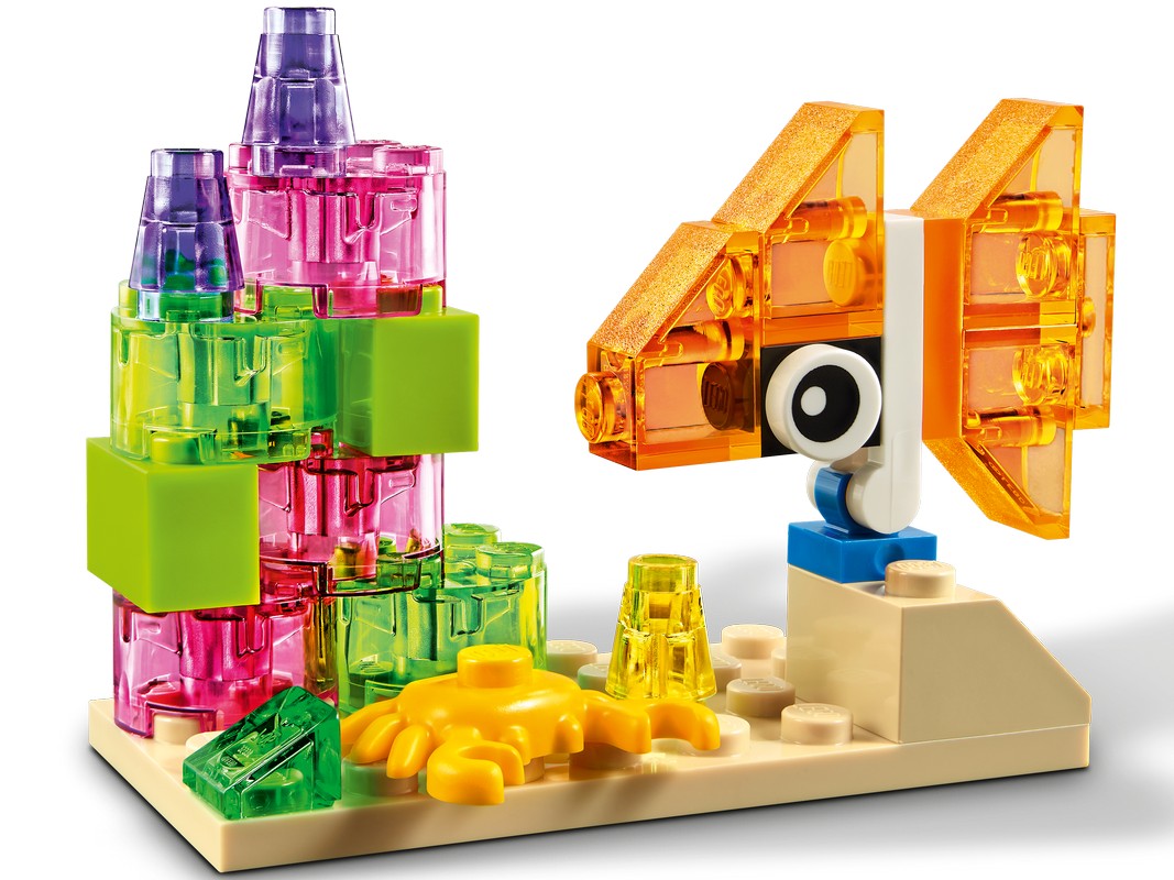 С конструктором LEGO Classic 11013 «Прозрачные кубики» вы проведете много часов за увлекательным занятием. Выберите любую идею для сборки, это могут быть: блестящий робот, подающий чай, волшебник с флаконом эликсиров, единорог, игрушечная птица, лев, робот, розовая птица, рыба среди кораллов или черепаха. Развивающая игрушка – это отличная идея для подарка на день рождения, Новый год или любой другой праздник для ребенка старше 4 лет.