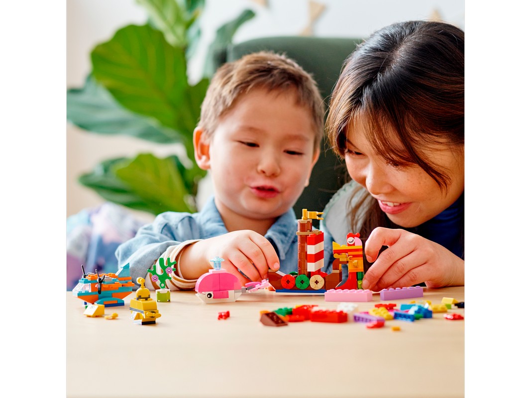 - Творческая игра для детей в возрасте от 4 лет — набор для сборки «Творческое веселье в океане» LEGO® Classic (11018) содержит огромное количество красочных деталей LEGO и шесть идей для моделей на океанскую тематику, чтобы начать веселье