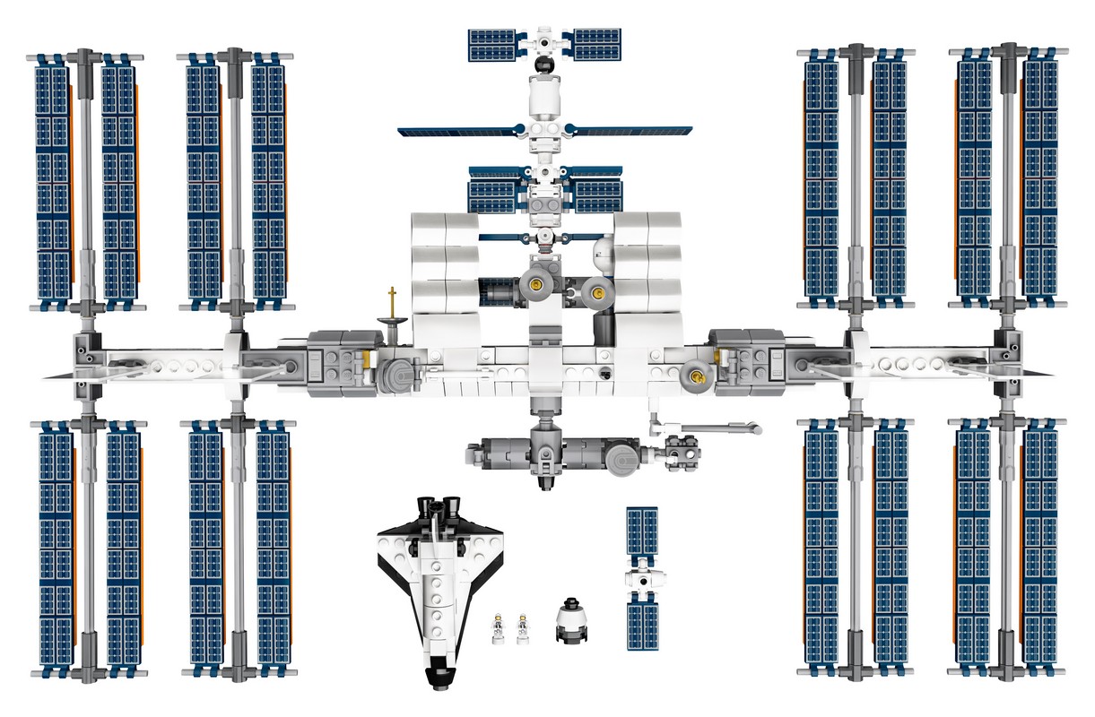 - МКС поставляется с подставкой, двумя фигурками астронавтов, мини-челноком НАСА из кубиков LEGO и тремя миниатюрными грузовыми кораблями. Всё это помогает создать потрясающий дисплей и оживить воспоминания о собранных в детстве конструкторах LEGO®.