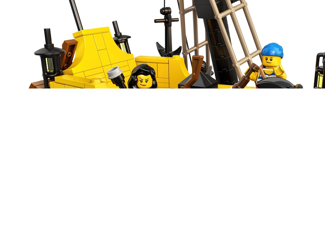 - Капитанская каюта, кухня, таверна, спальня, тюремная камера и другие помещения заполнены интересными деталями. Корабль также можно превратить в подобие классической модели пиратского корабля Капитана Рыжей Бороды «Барракуда Черных морей», созданной LEGO® в 1989 году.