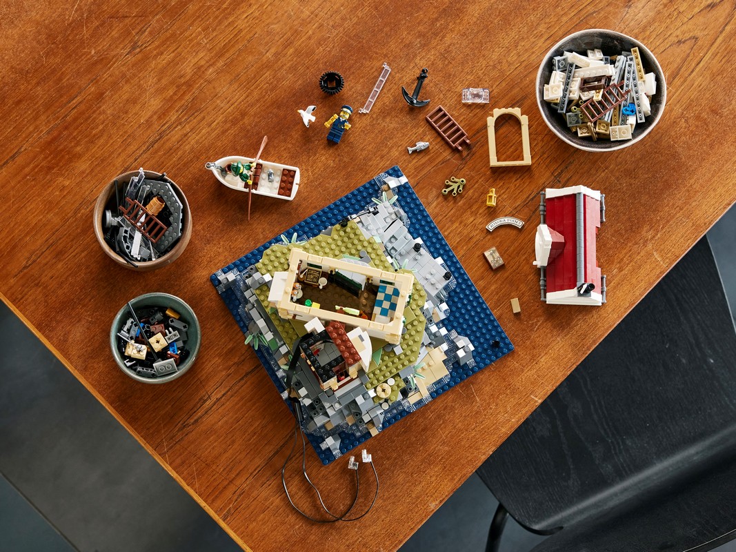 - 2 минифигурки LEGO® и 2 фигурки – включает смотрителя маяка и матроса со сборкой модели гребной лодки, а также кошку и чайку, чтобы оживить сцену