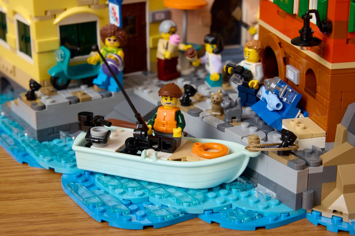 - 10 минифигурок LEGO® оживят эту сцену с помощью 10 минифигурок., в том числе торговец рыбой, владелец магазина мороженого, турист (дизайнер-фанат набора!) и водитель скутера, а также 2 фигурки котенка