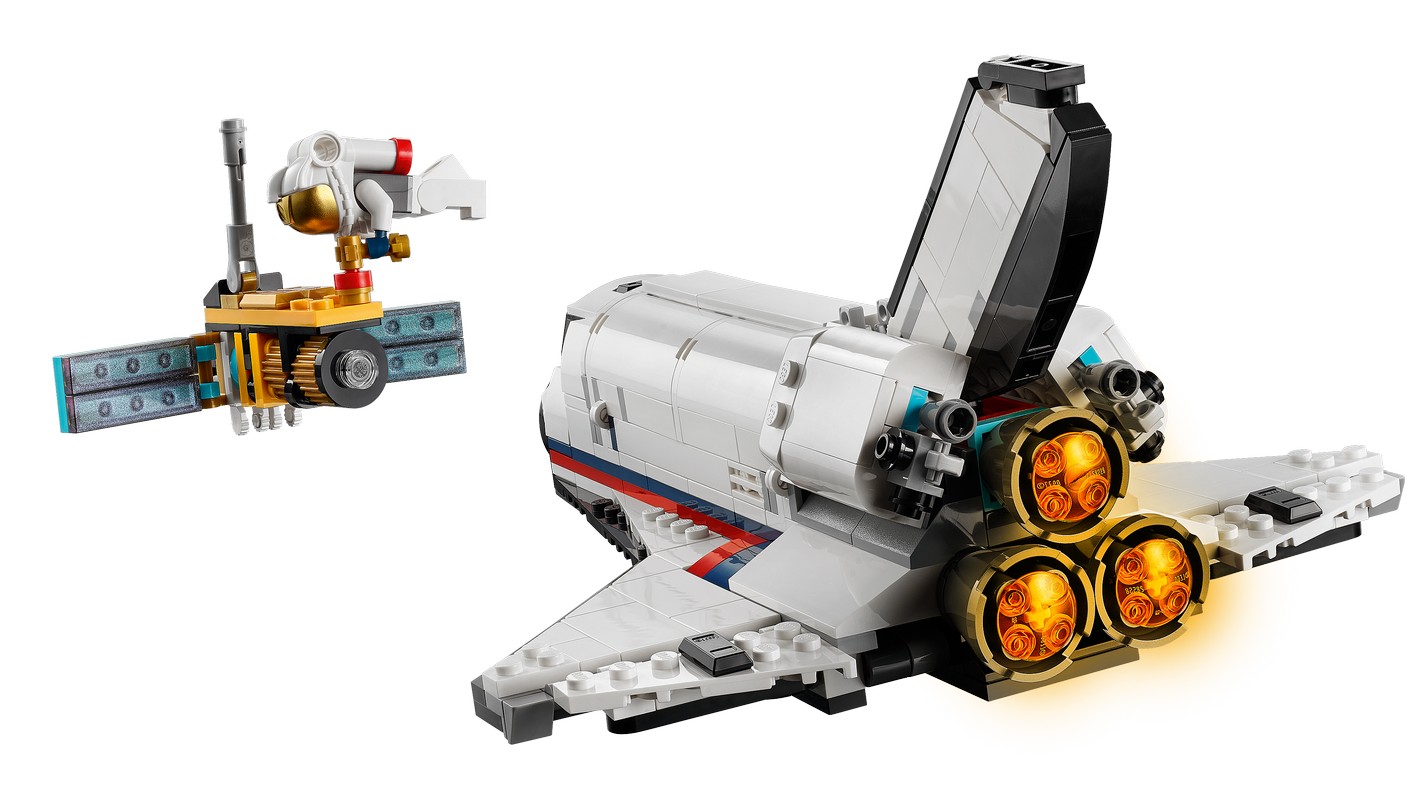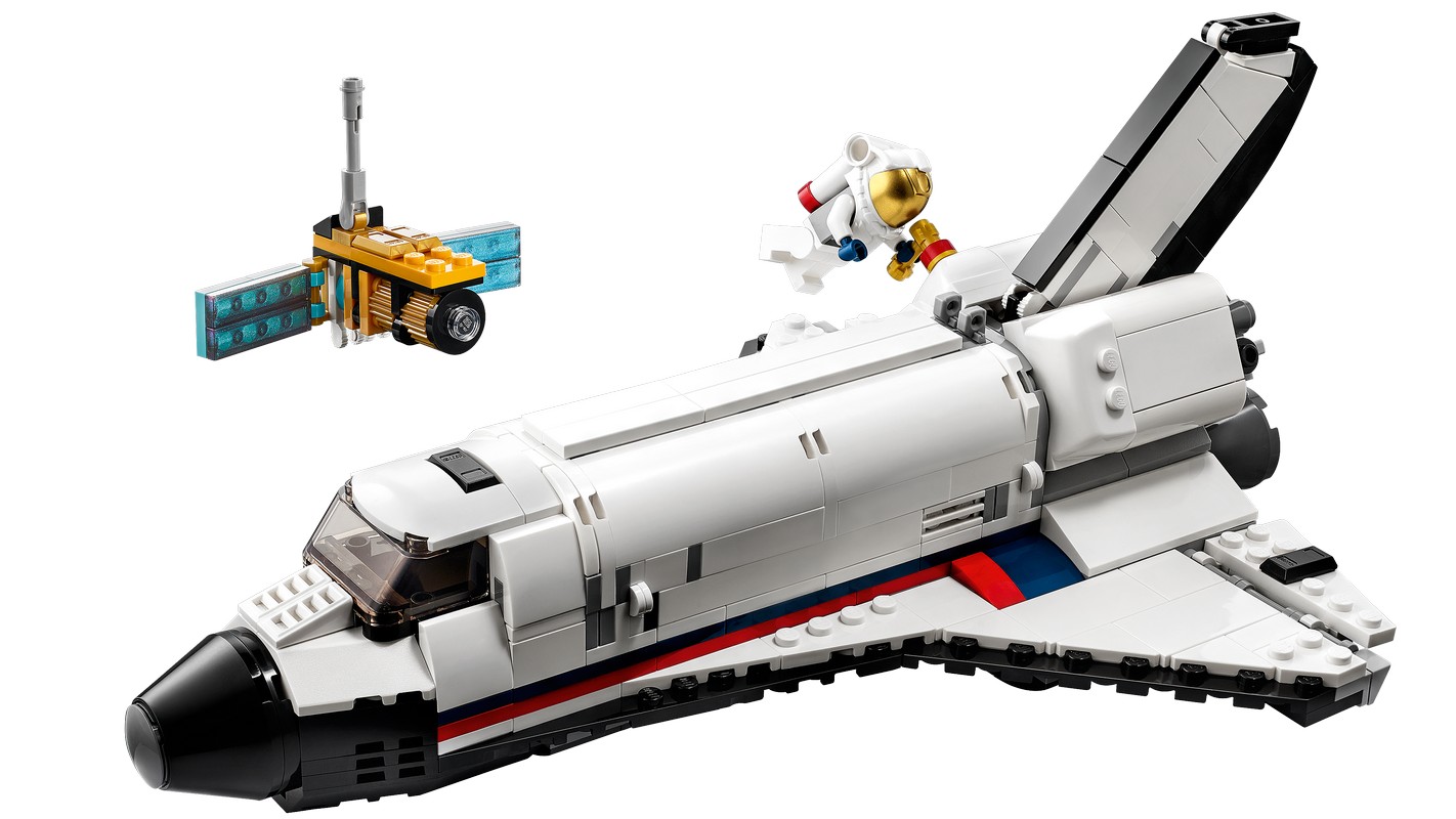 - Набор «Приключения на космическом шаттле» LEGO Creator 3 в 1 (31117) вдохновляет на невероятные ролевые игры с тремя моделями в одной: космический шаттл, игрушечная ракета и луноход.