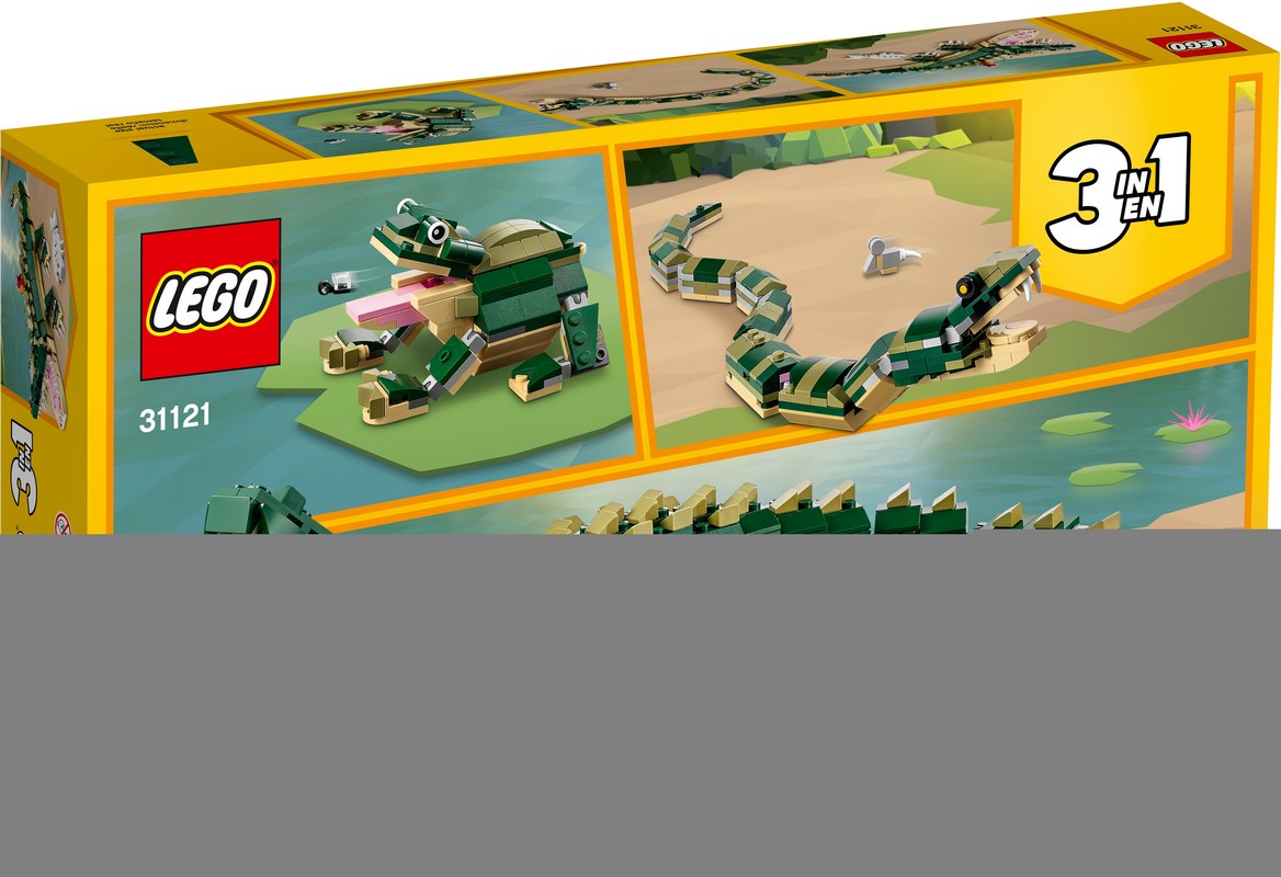 - Этот набор «Крокодил» LEGO Creator 3 в 1 (31121) вдохновляет детей на творчество и сборку трех моделей: крокодила, змеи и лягушки.