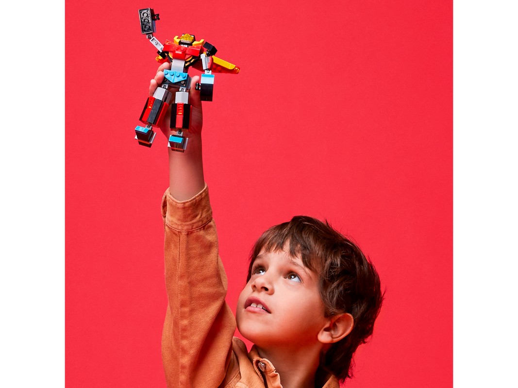 - Игрушка «3 в 1» — набор для сборки «Суперробот» (31124) позволяет детям наслаждаться творческой игрой с тремя моделями в одном наборе: роботом, драконом и реактивным самолётом