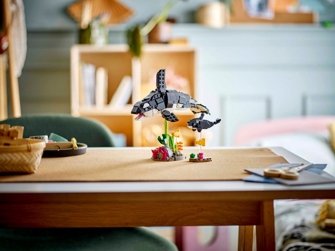 - Модели для игры и демонстрации – когда время игры закончится, положите фигурки животных LEGO® на на полке или прикроватной тумбочке с 2 прозрачными подставками для демонстрации семейства косаток