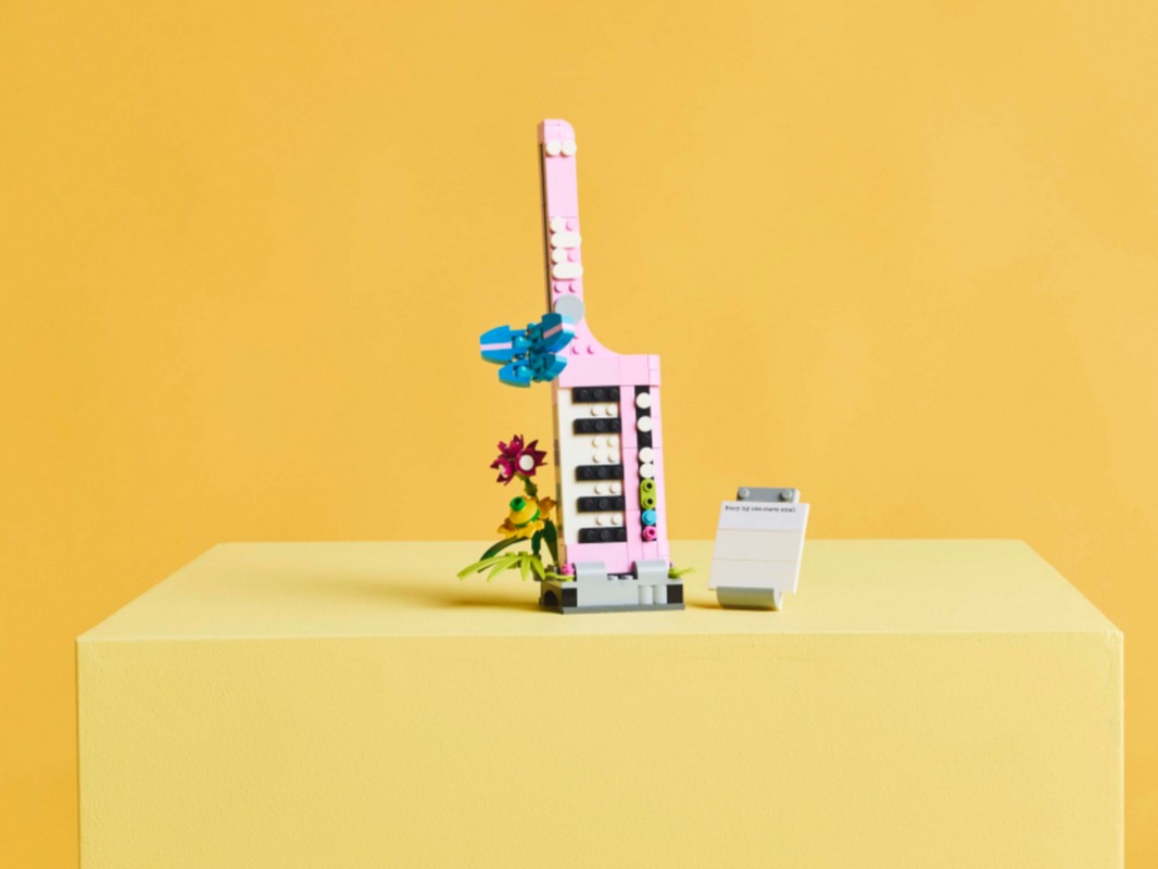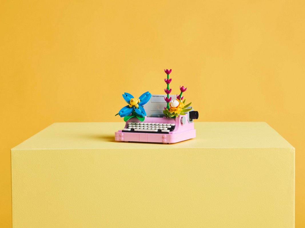 У поклонников LEGO есть выбор из 3 различных наборов для изготовления цветов: пишущая машинка с Игрушка с цветами; игрушечный музыкальный инструмент keytar на подставке с цветами; или цветочный горшок с ручкой и блокнотом. К набору для сборки игрушек также прилагаются 3 наклейки с продуманными фразами, которые дети могут использовать для украшения собранных из кирпичиков моделей.