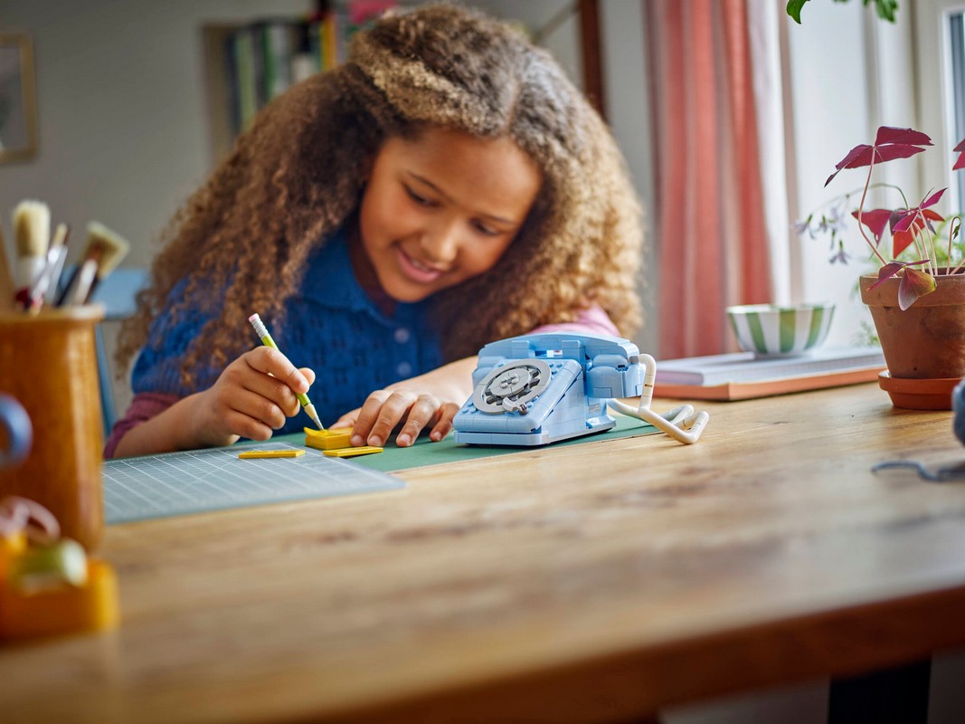 Взрослые, испытывающие ностальгию, и творческие дети в возрасте от 8 лет и старше могут вернуться в прошлое с помощью этого стильного конструктора LEGO® Creator 3в1 Retro Telephone (31174). Это классная ретро-игрушка-телефон 1960-х годов с поднимаемой трубкой, гибким шнуром, поворотным диском и функцией пружинного нажатия, когда абонент кладет трубку. В набор для декора в стиле ретро также входят карандаш в виде кирпичика и настраиваемый блокнот на липучке с 3-мя листочками на выбор с различными надписями.