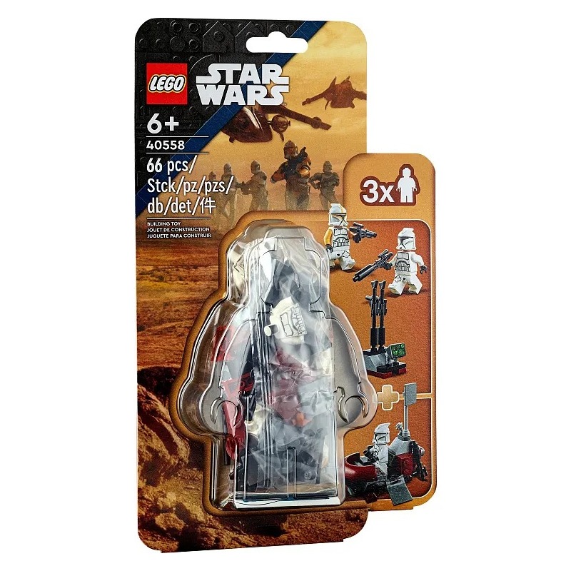 3 минифигурки LEGO® для ролевых игр - Клонируйте Командир с бластерным пистолетом и 2 солдата-клона, каждый с бластерной винтовкой. Эта строительная игрушка из 66 частей предназначена для детей в возрасте от 6 лет и старше.