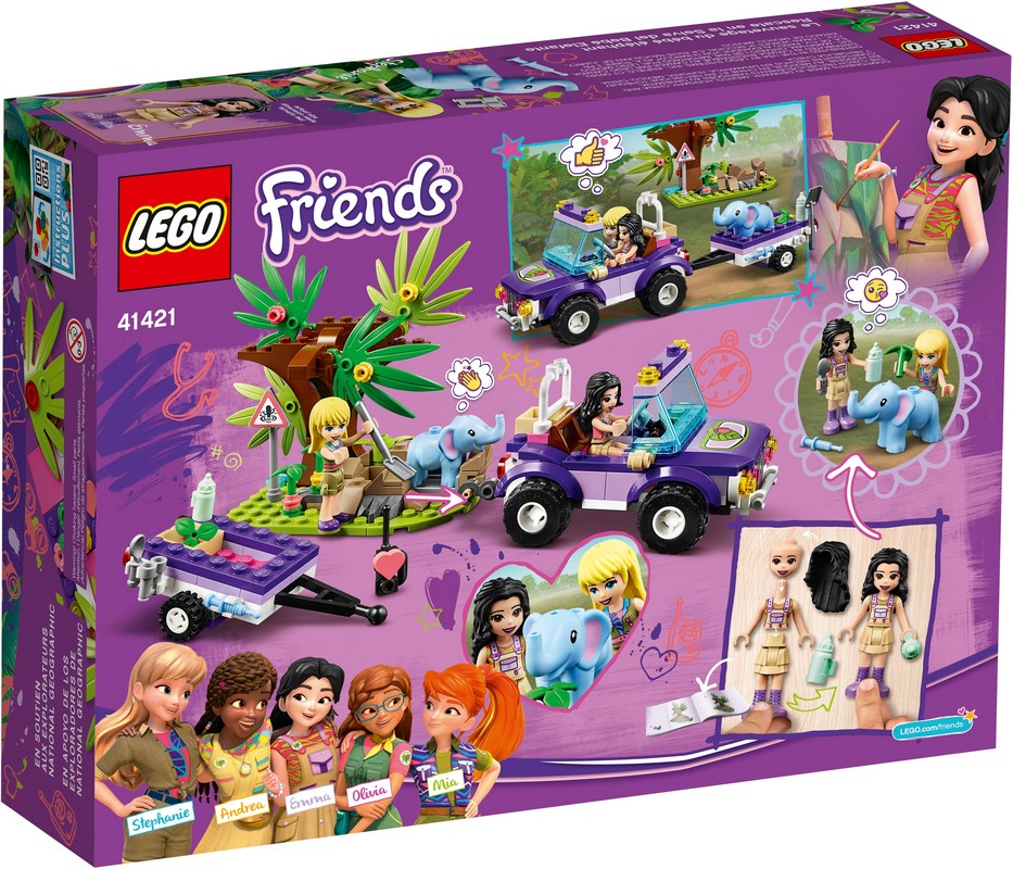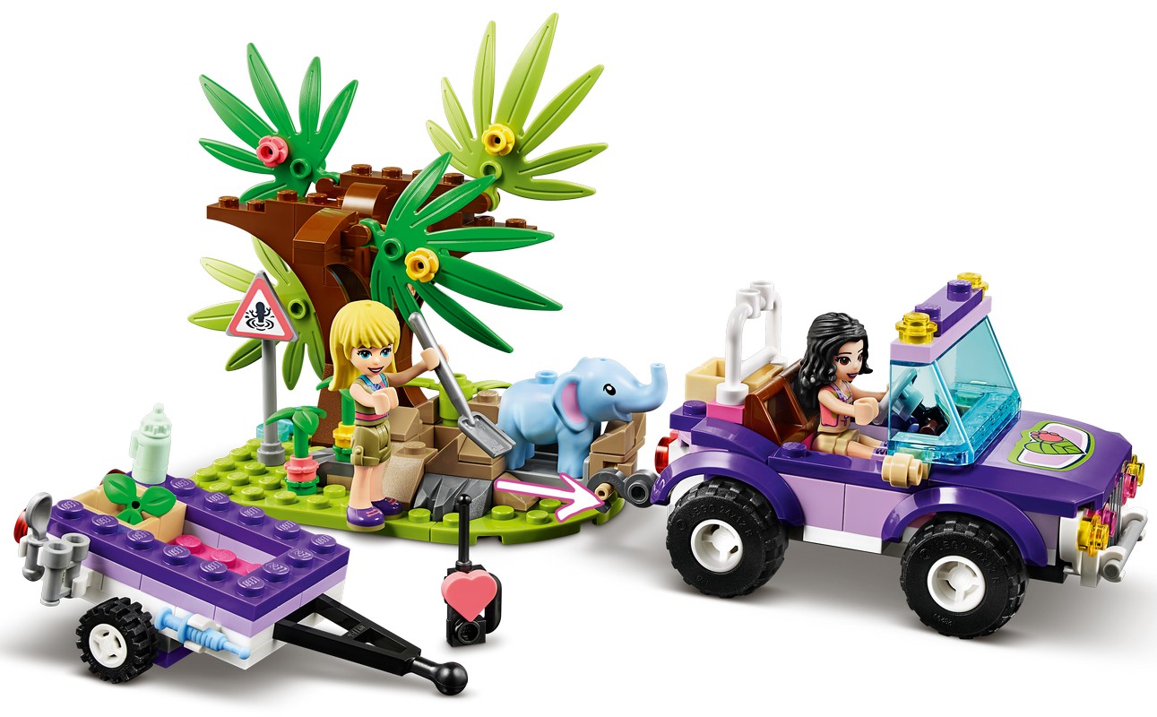 С игровым набором "Джунгли: спасение слоненка" из серии LEGO Friends, который рассчитан на детей от 6 лет, ваш ребенок сможет стать настоящим спасателем и помочь Стефани и Эмме освободить маленького слоненка из вязкой и липкой грязевой лужи. Вдобавок ко всему, к животному подбирается огромный ядовитый паук, который может укусить его. Для операции по спасению у смелых девочек есть большой грузовик, с помощью которого можно вытащить малыша из грязевого плена. После спасения слоненка необходимо отвезти в прицепе на ветеринарную станцию в штабе спасателей. Но сначала покормите его из бутылочки и успокойте, ведь ему было так страшно!