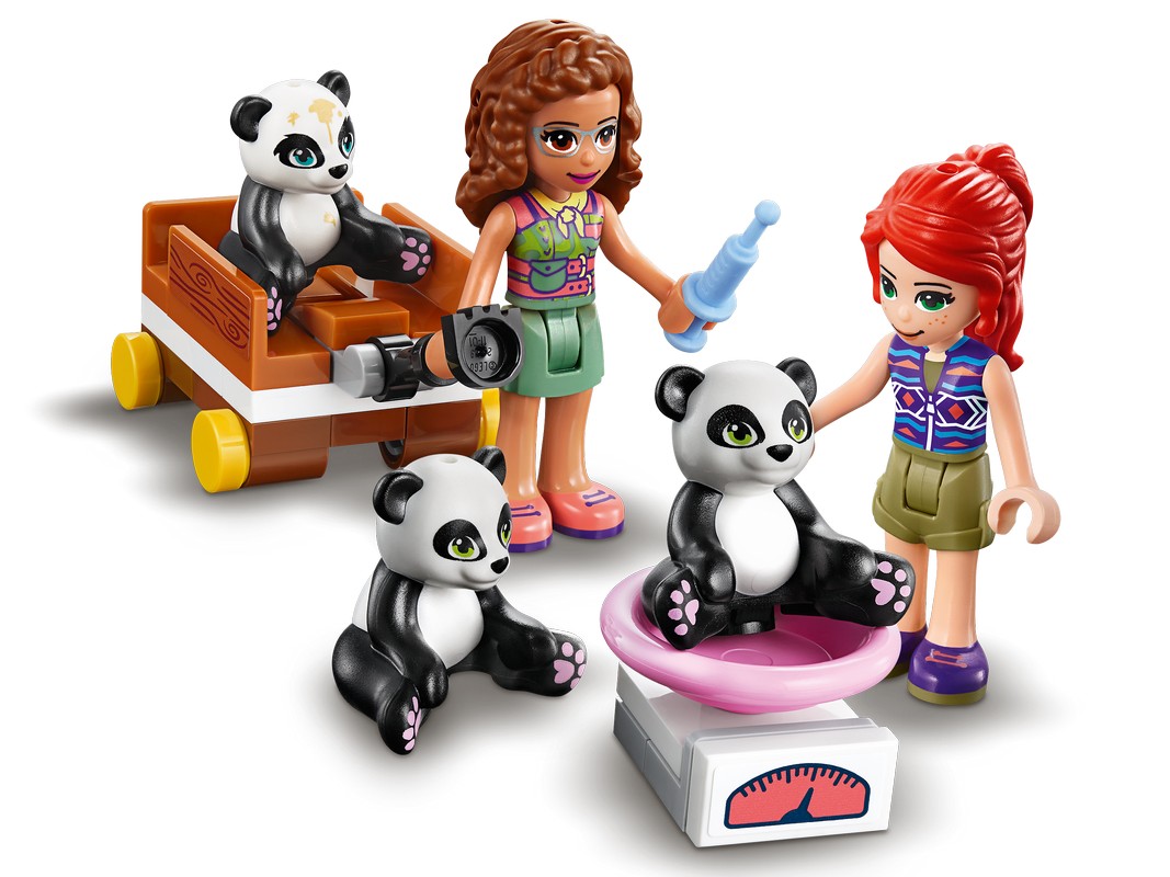 С помощью конструктора "Джунгли: домик для панд на дереве" из серии LEGO Friends можно легко научить детей ухаживать за братьями нашими меньшими. 3 маленькие панды нуждаются в специальном уходе, поэтому нужно помочь Мие и Оливии позаботиться о них, пока те не подрастут и не наберут нужный вес, чтобы жить самостоятельно. Помогите спасателям построить для них домик на дереве и обустроить игровую площадку для малышей. Необходимо собрать горку и турник, сложить качели, а также сделать подвесное кольцо. Кормить животных нужно из бутылочки, но не забывайте собирать для них питательные листья бамбука в специальную тележку. А перед сном обязательно нужно помыть пандочек в деревянной ванночке с пеной и взвесить их на весах. Играть с этим набором могут все дети с возраста 7 лет.