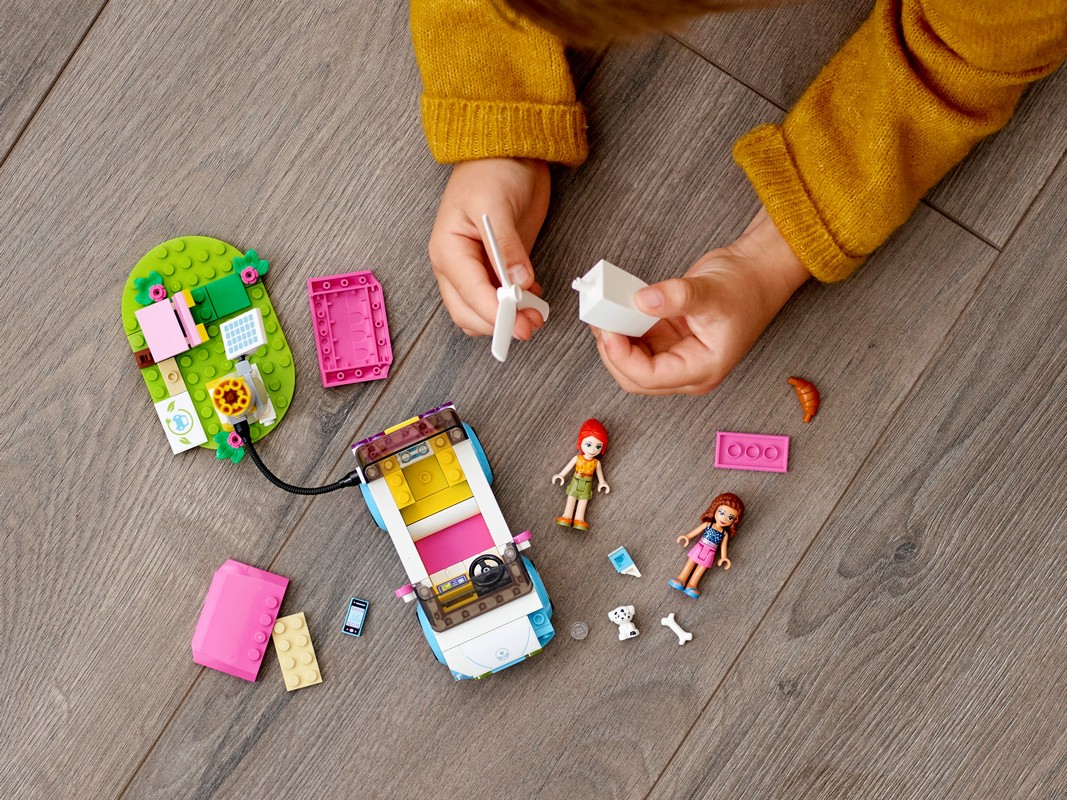 Отправляйтесь навстречу зеленому и чистому будущему вместе с конструктором LEGO Friends 41443 «Электромобиль Оливии». Мия и Оливия едут на своем электромобиле, на заднем сиденье отдыхает щенок Эллиот. У девушек почти закончилась энергия, поэтому они были вынуждены остановиться на станции для подзарядки. Для получения электроэнергии имеются солнечная панель и ветряная мельница. Пока автомобиль заряжается, Оливия решила поговорить по телефону. В это время вы можете поиграть со щенком Эллиотом. Как только машина зарядит аккумуляторы, вы отправитесь в путь. Конструктор с фигурками – отличный новогодний подарок для мальчиков и девочек старше 8 лет.