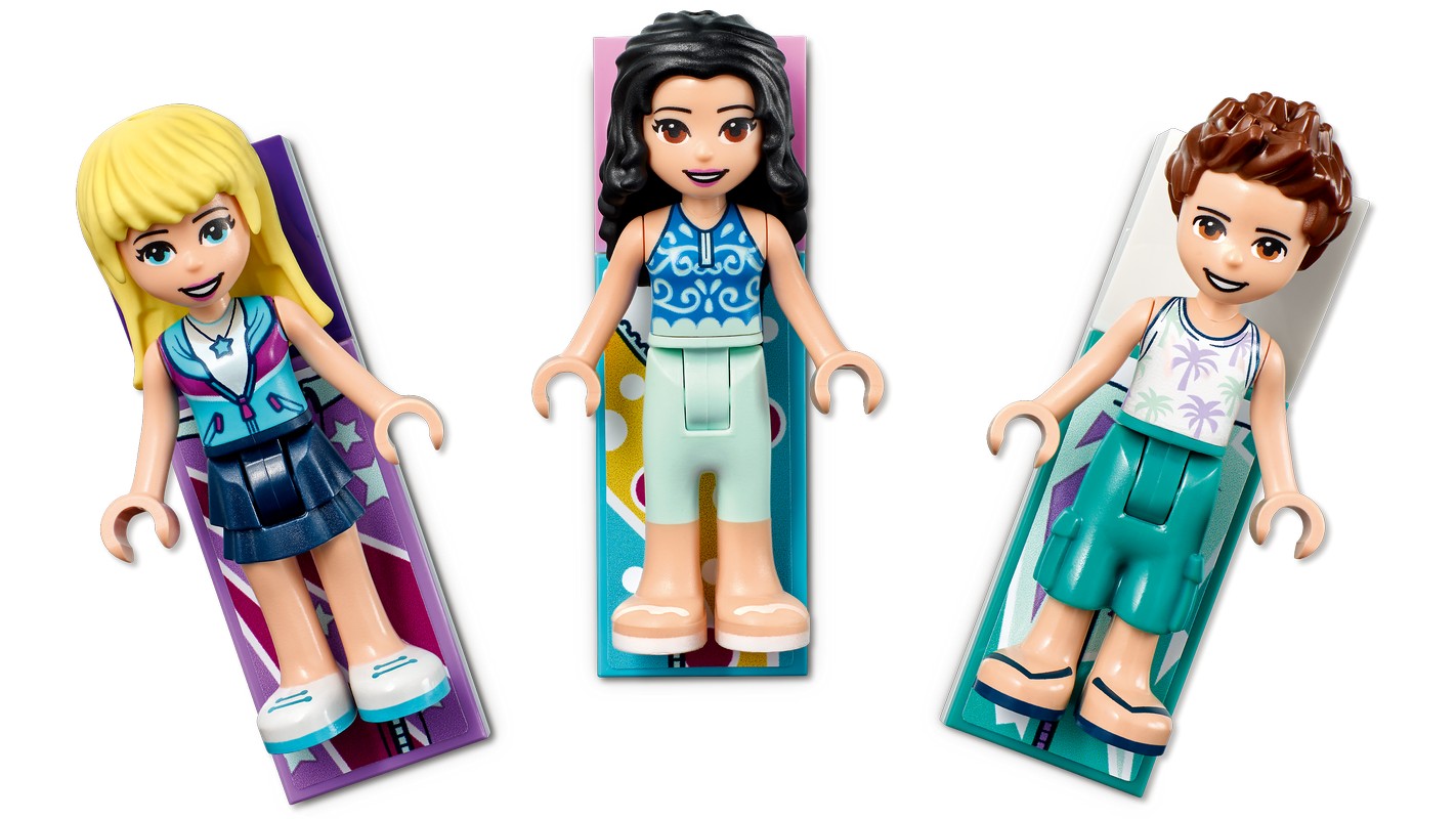 - В этом наборе, который станет отличным подарком на день рождения, есть мини-куколки Стефани, Эммы и Итана LEGO Friends, игрушечный енот и детальный дом на колесах, парусная лодка, набор для пикника на берегу озера, причал и горный пейзаж.