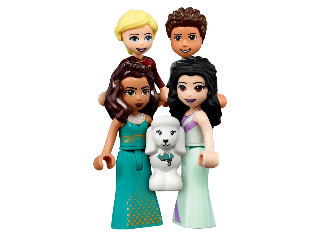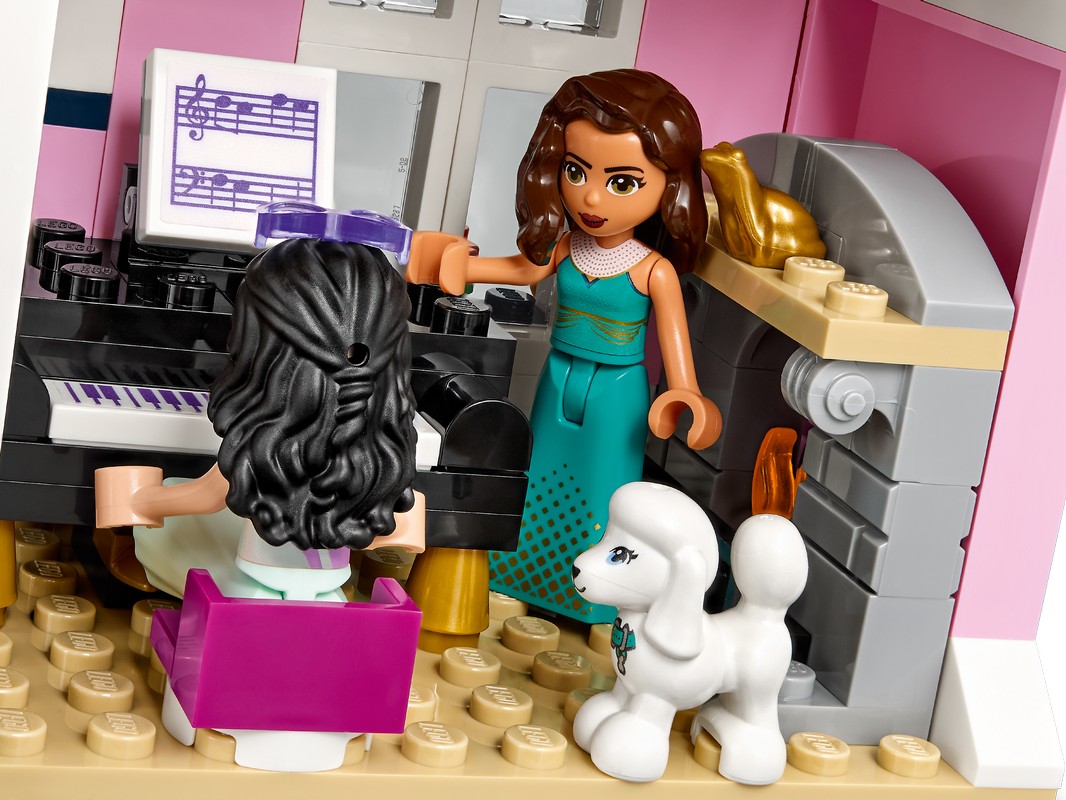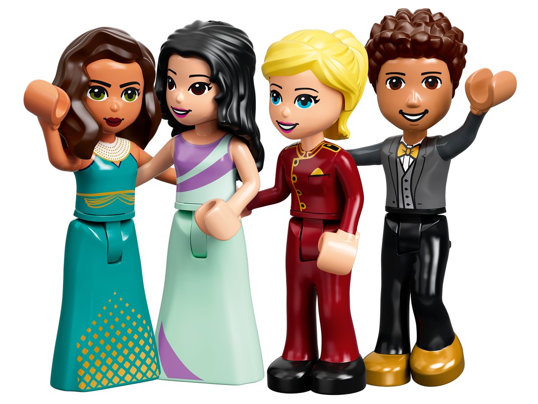 Здесь есть множество интересного: от бара с фортепиано и стойки администраторов до номеров с ванными комнатами и обеденной зоны на открытом воздухе, а также таких шикарных деталей, как спа и пентхаус. В набор также входит мини-куколка актрисы Амелии, чтобы дети могли разыгрывать сцены из жизни знаменитостей. Подружки LEGO Friends Стефани, Эмма и Ривер сыграют в наборе роли гостей, администраторов или посыльных.