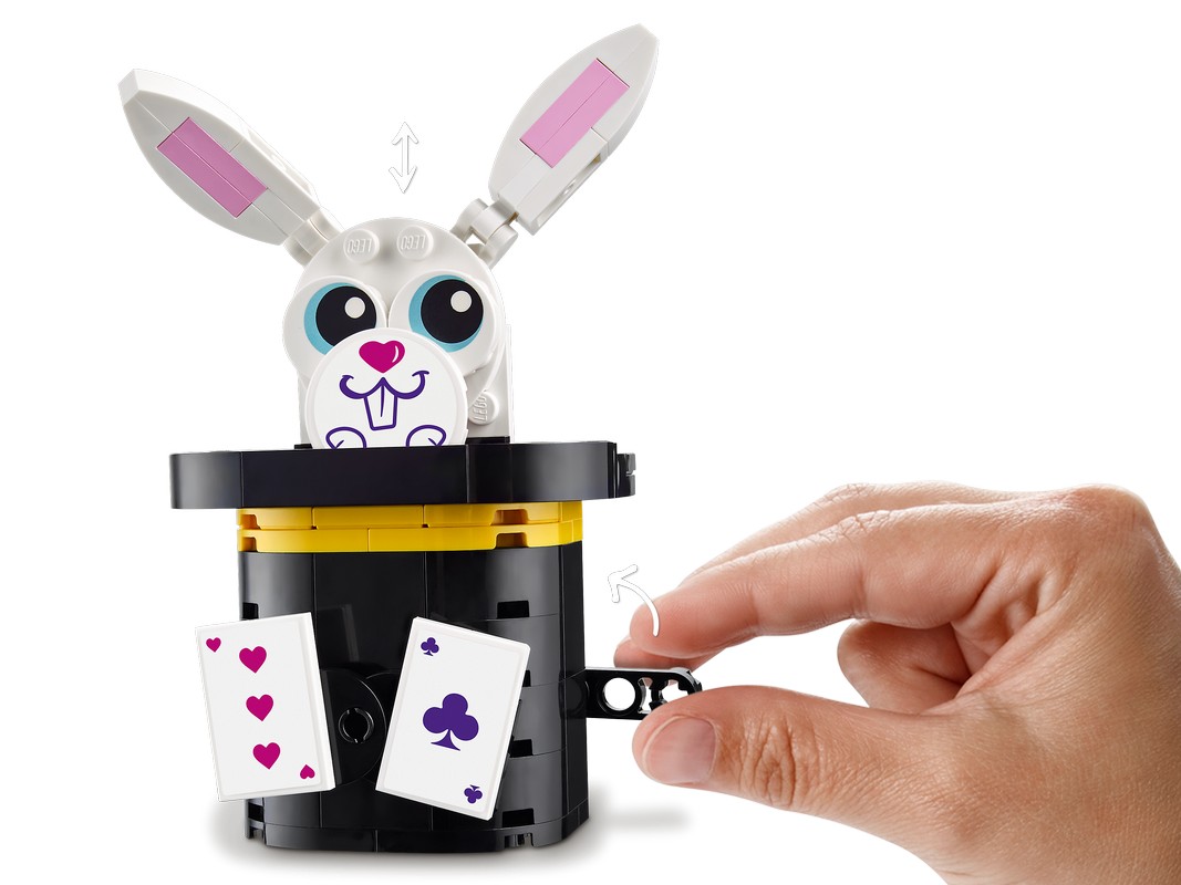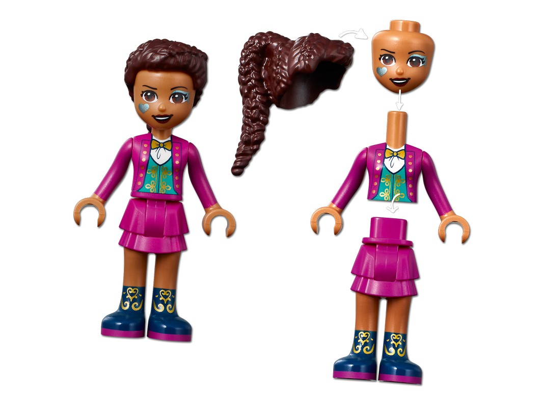 Эта модель из 974 деталей станет вдохновляющим строительным проектом, и собрав ее, вы открываете множество творческих способов игры. В центре внимания — шапито с тканевой крышей, где проходит волшебное шоу. Дети могут играть в фокусников и при помощи коробки с умной функцией заставлять исчезать мини-куколок LEGO Friends или представить, что они — огнедышащие жонглеры. В наборе есть игрушечные американские горки с вагончиками в виде кроликов и камерой для фотографий, а также качели с противовесом, которые закружат детей. Когда свет выключается, дети могут наблюдать, как оживают светящиеся в темноте кубики!
