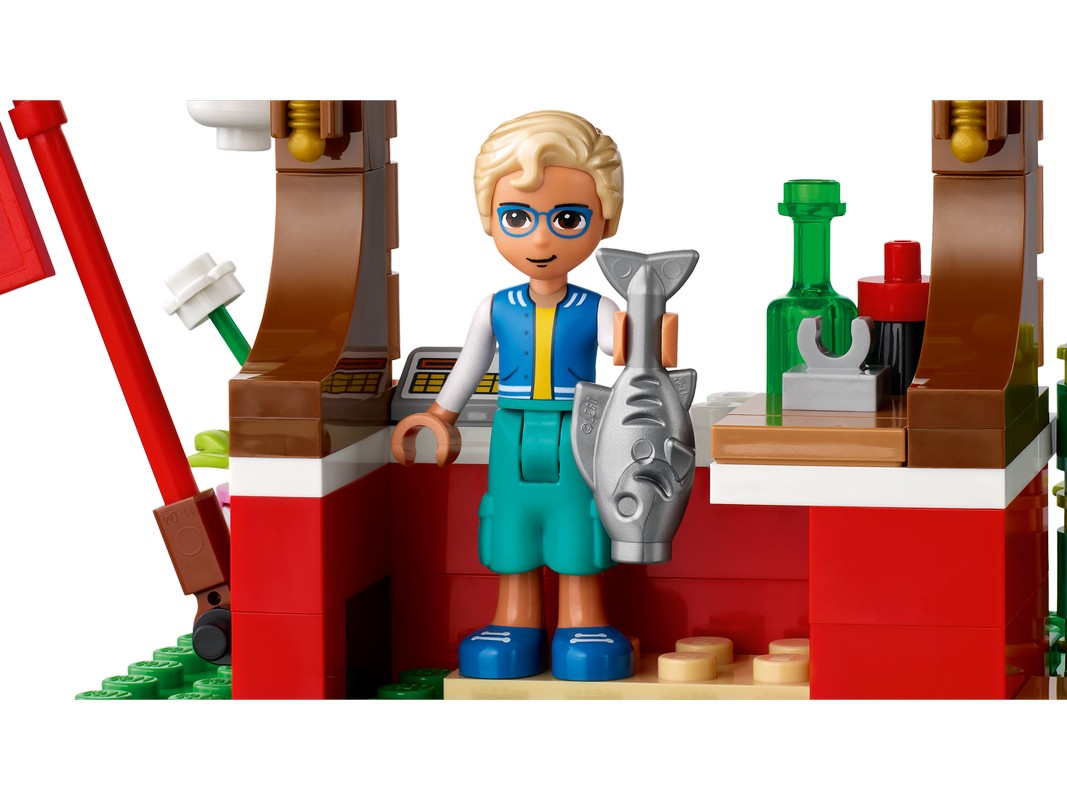 - Полный забавных функций — в наборе на гастрономическую тему из 592 деталей есть 3 мини-куколки, среди которых подружка LEGO Friends Эмма, фургон с тако, бар с соками, прилавок с суши, обеденная зона, знак с кактусом и игрушечный котенок.
