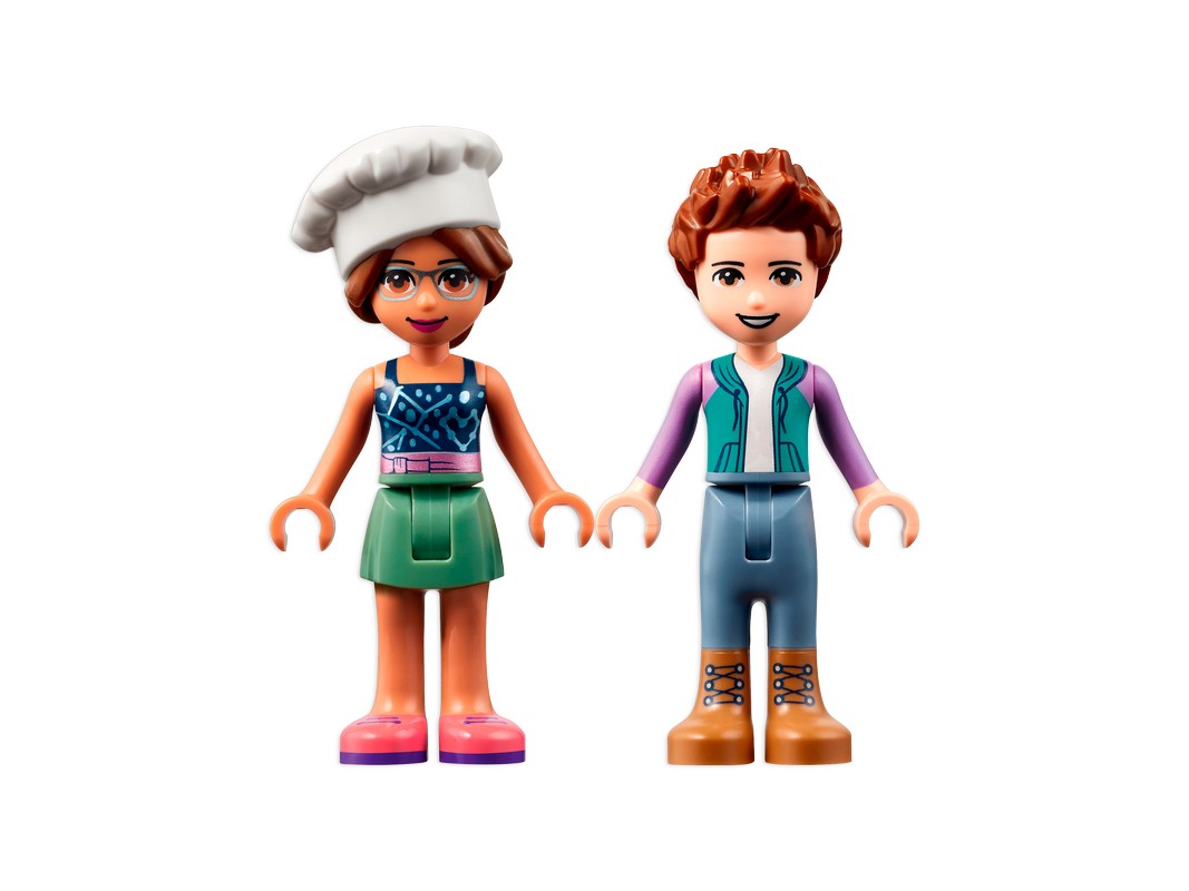 - Подарок для любителей пиццы – включает LEGO® Friends Оливию и Итана, отдельная зона отдыха на открытом воздухе, имитирующая печь для пиццы, лопатка для пиццы, скейтборд и игрушки для еды, такие как сыр, терка и бутылочка для соуса