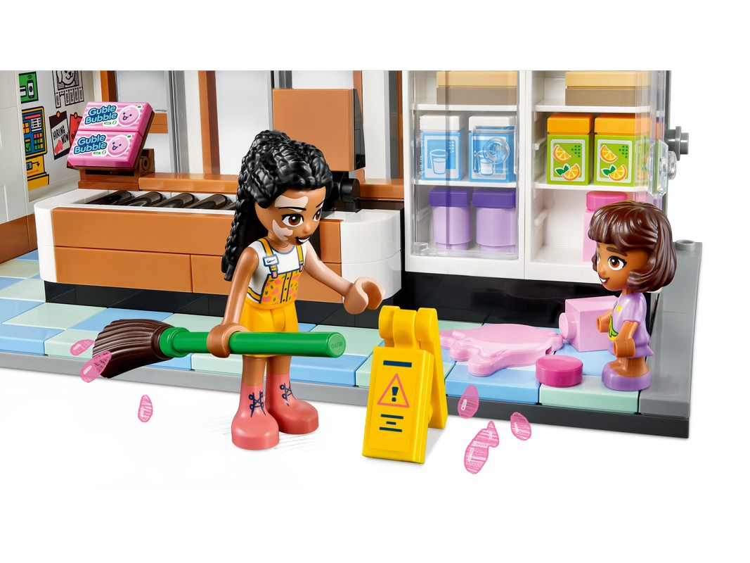 - Включает в себя 4 мини-куклы – В продуктовом магазине игрушек представлены мини-куклы LEGO® Friends Лео, Отэм, Джордин и Айзек, а также младшая сестра Альба и персонажи кота Чурро