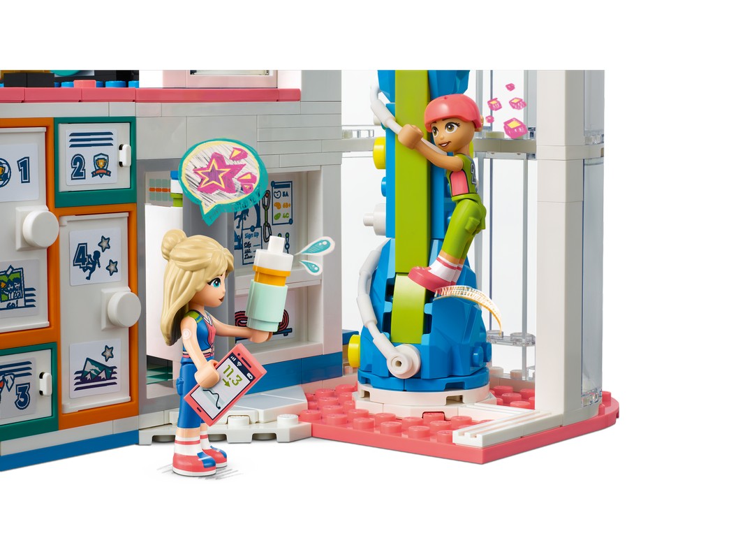 Порадуйте любящих спорт детей в возрасте от 8 лет и старше этой игрушкой LEGO® Friends Sports Center (41744). В набор входят 4 мини-куклы и множество аксессуаров. Он включает в себя 1 поле, которое можно преобразовать, поменяв местами ворота и сетки для различных видов спорта. В набор также входят держатели для мини-кукол и различные мячи, чтобы дети могли заставить персонажей играть по-настоящему. После футбольной тренировки поменяйте ворота местами с теннисной сеткой и забросайте ее мячами. Затем переключитесь на баскетбольное кольцо и научитесь забрасывать мяч в корзину. Там также есть табло и место для безопасного хранения мячей. Внутри здания спортивного центра дети могут посетить тренажерный зал, стену для скалолазания и раздевалку.