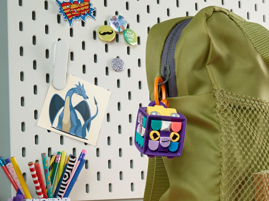 - Порадуйте ребенка брелком с потрясающим драконом LEGO DOTS (41939). В комплект входит прочный кубик с креплением, множество цветных плиток и инструмент для их извлечения.