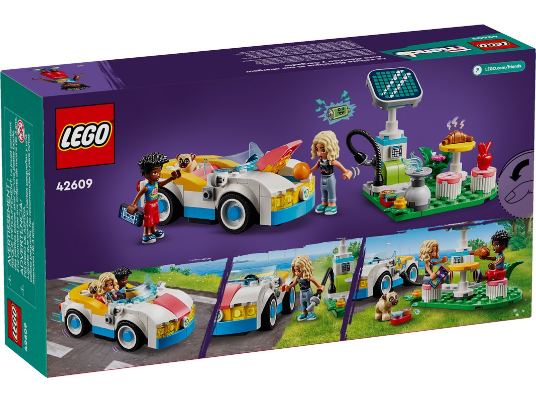 - Конструктор LEGO® Friends с электромобилем и зарядным устройством – Этот набор игрушек для девочек, мальчиков и детей старше 6 лет включает в себя 2 мини-куклы, фигурку собаки, автомобиль и воображаемую зарядную станцию на солнечной энергии