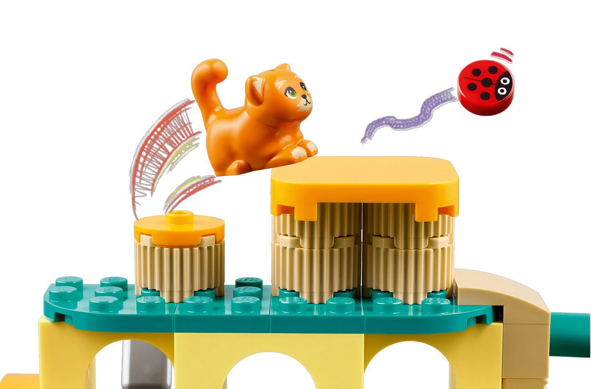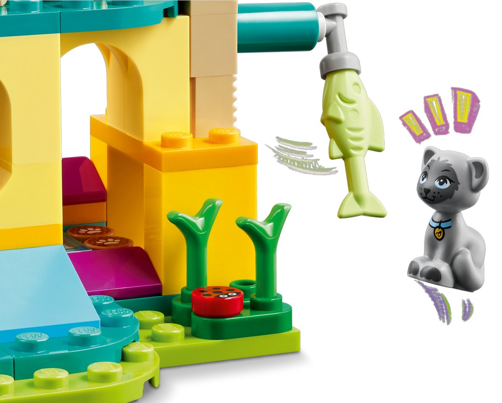 - Набор для сборки моделей игровой площадки для кошек – Приключенческий набор LEGO® Friends Cat Playground для девочек, мальчиков и детей старше 5 лет включает в себя 2 мини-куклы, 2 фигурки кошек и множество аксессуаров для ухода за животными