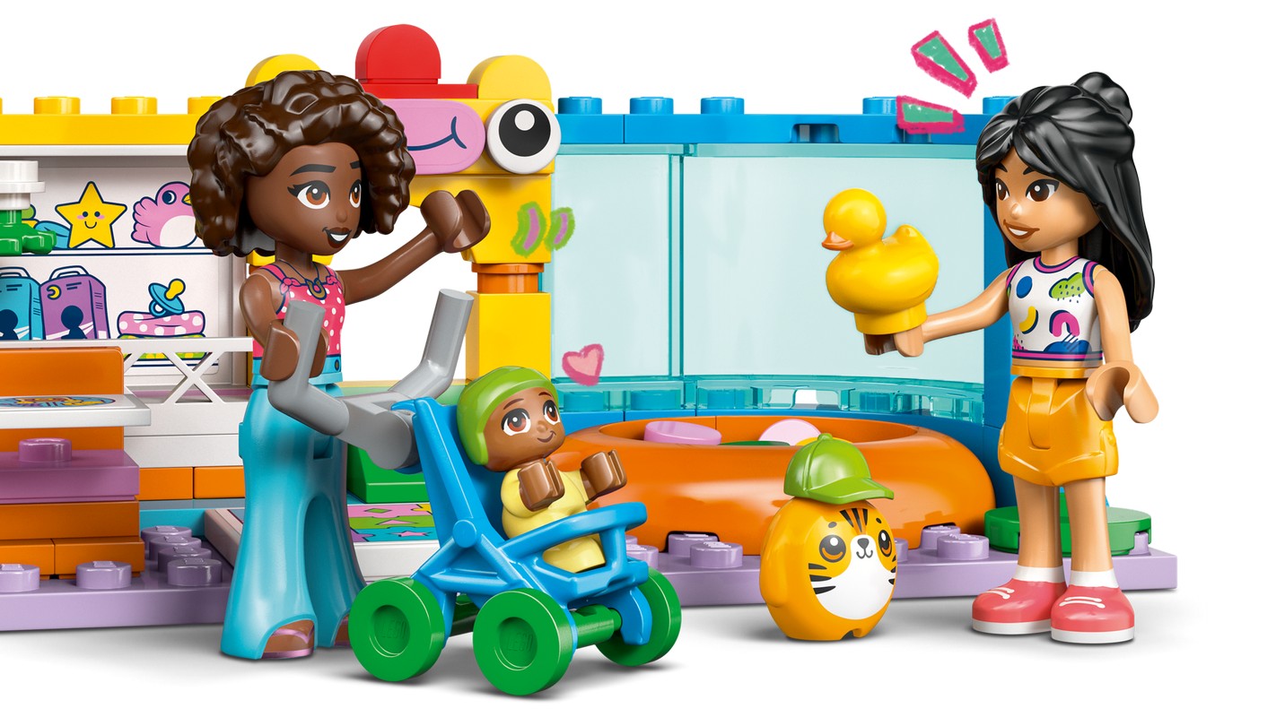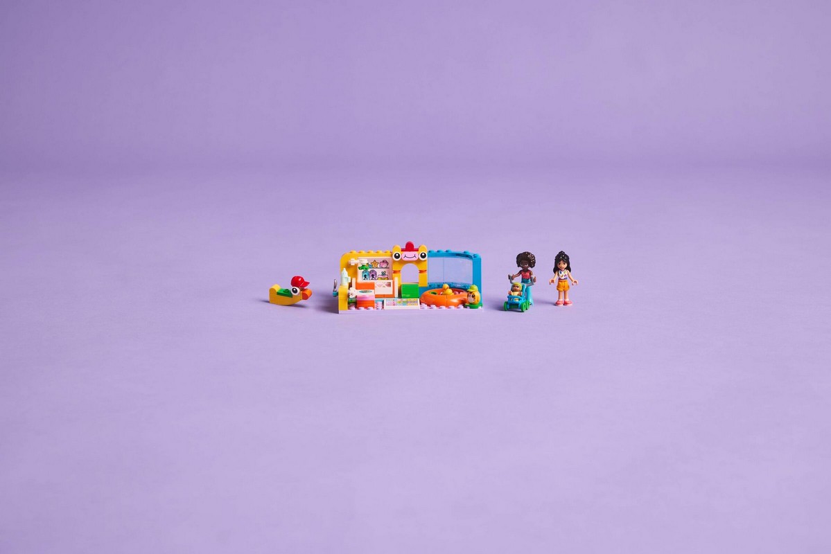 Этот набор игрушек для ролевых игр для детей в возрасте от 6 лет и старше позволяет девочкам и мальчикам создавать бесконечные истории о дружбе с нянями. В набор для творчества LEGO® Friends "Игровая комната младшей сестры Алии" (42645) входят 2 мини-куклы LEGO Friends, детская фигурка и множество аксессуаров для ролевых игр.Вдохновите детей на создание игровой комнаты, где Алия и Лианн будут ухаживать за младшей сестрой Алии, Амалией. Здесь есть все, что нужно детям для создания историй о дружбе. Они могут кормить ребенка прямо за столом – продуманная функция переворачивания показывает, сколько беспорядка ребенок может натворить во время еды! Когда придет время вздремнуть, для Амалии приготовлена кроватка. Здесь также есть горка, коврик для игр, площадка для игры в мяч, утка-качалка и симпатичный плюшевый конструктор LEGO. Затем друзья отправятся с Амалией на прогулку в игрушечной детской коляске.