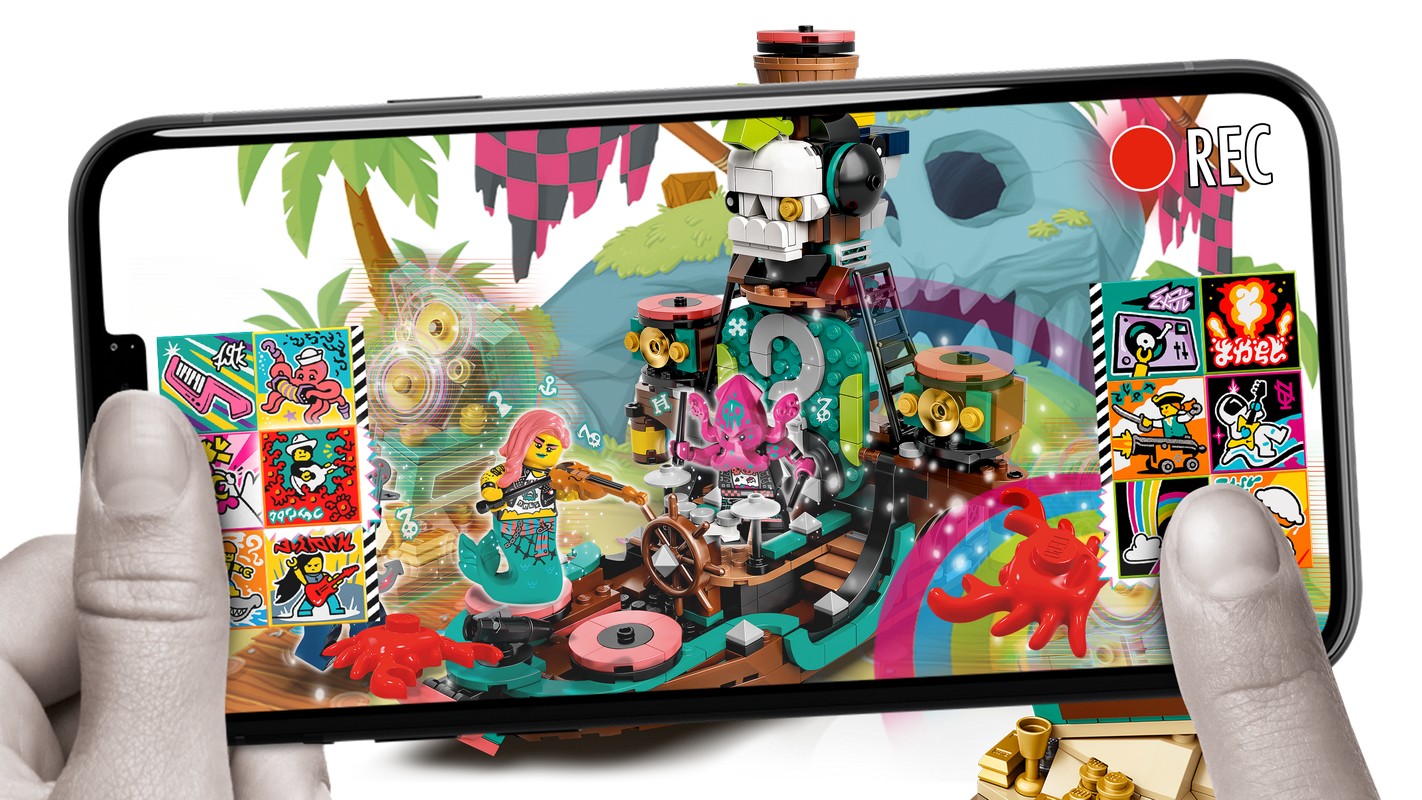 - Детям понравится менять свою реальную модель LEGO, чтобы менялся фон у них в роликах, — например, можно поменять украшение-череп на голову акулы или поменять динамики в виде сундуков с сокровищами на пушки.