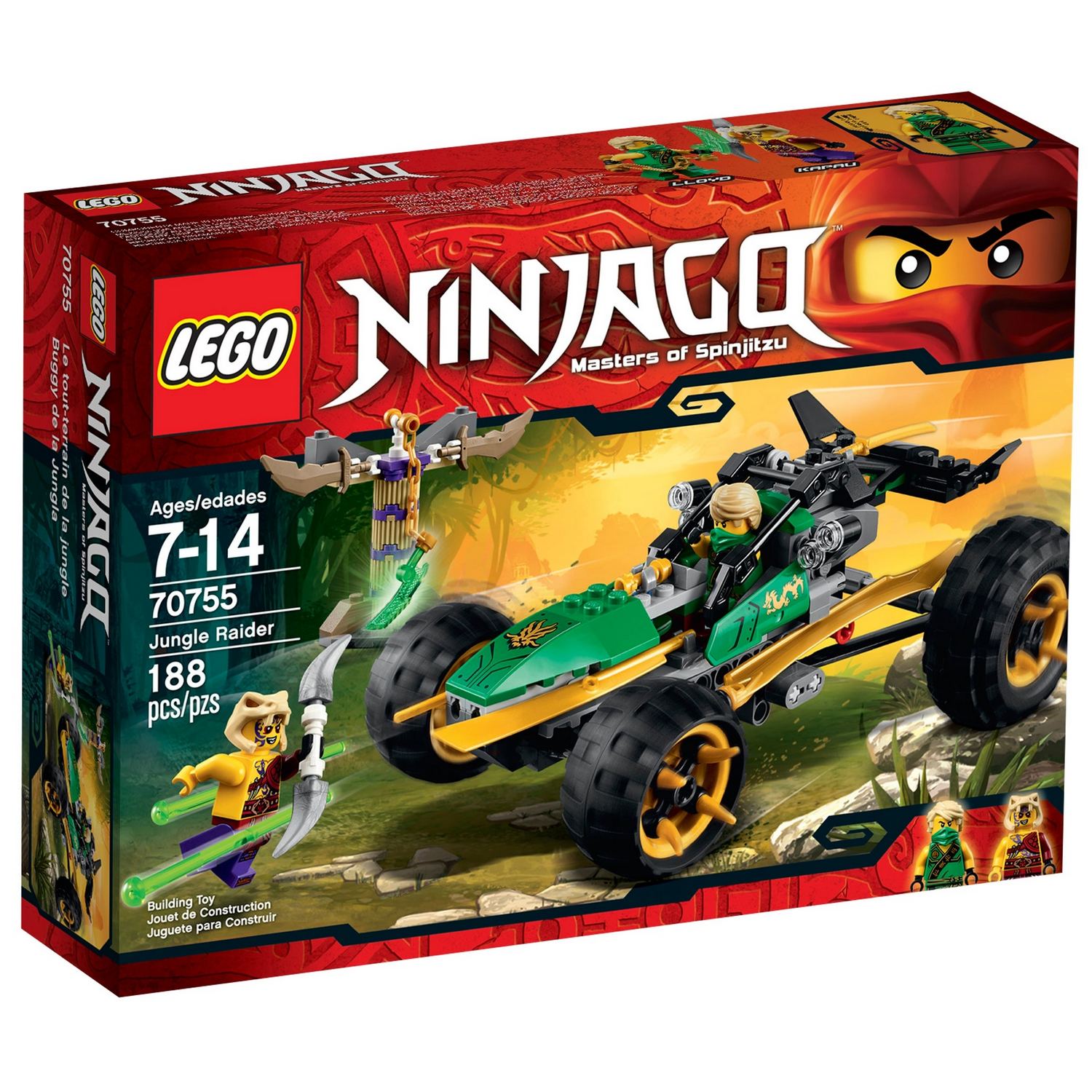 - Jungle Raider оснащен открывающейся кабиной с перекладиной, большими колесами с резиновыми шинами и золотыми шипами, встроенной подвеской, подпружиненным двойным стрелком, деталями ниндзя и огромными золотыми лезвиями.