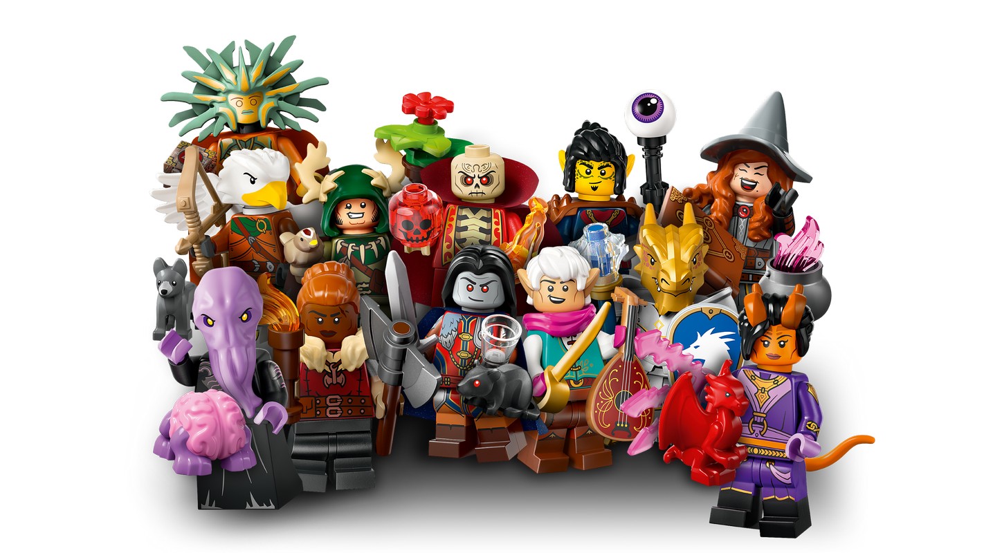 В каждой коробке есть по 1 минифигурке-сюрпризу LEGO Dungeons u0026 Dragons и в общей сложности 12 персонажей, которых нужно собрать: Колдун-тифлинг, Эльф-бард, Друид-халфлинг, Гном-варвар, паладин-драконорожденный, Рейнджер-Аракокра, Гит-чернокнижник, Пожиратель разума, Повелительница Боли, Страд фон Зарович., Таша, королева ведьм, и Сзасс Тэм.
