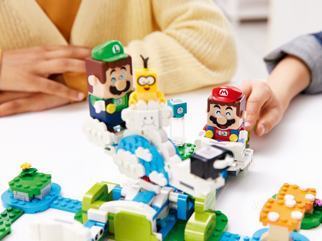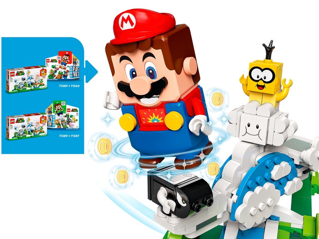 - Добавьте в построенную из кубиков вселенную LEGO Super Mario испытание с крутящимся облаком и виртуальными монетами с дополнительным набором «Небесный мир лакиту»(71389).