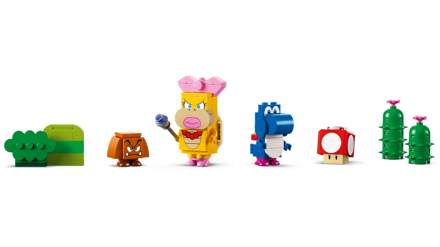 - 3 LEGO® Super Mario™ фигурки – В набор входят Венди, синий Йоши и Гумба