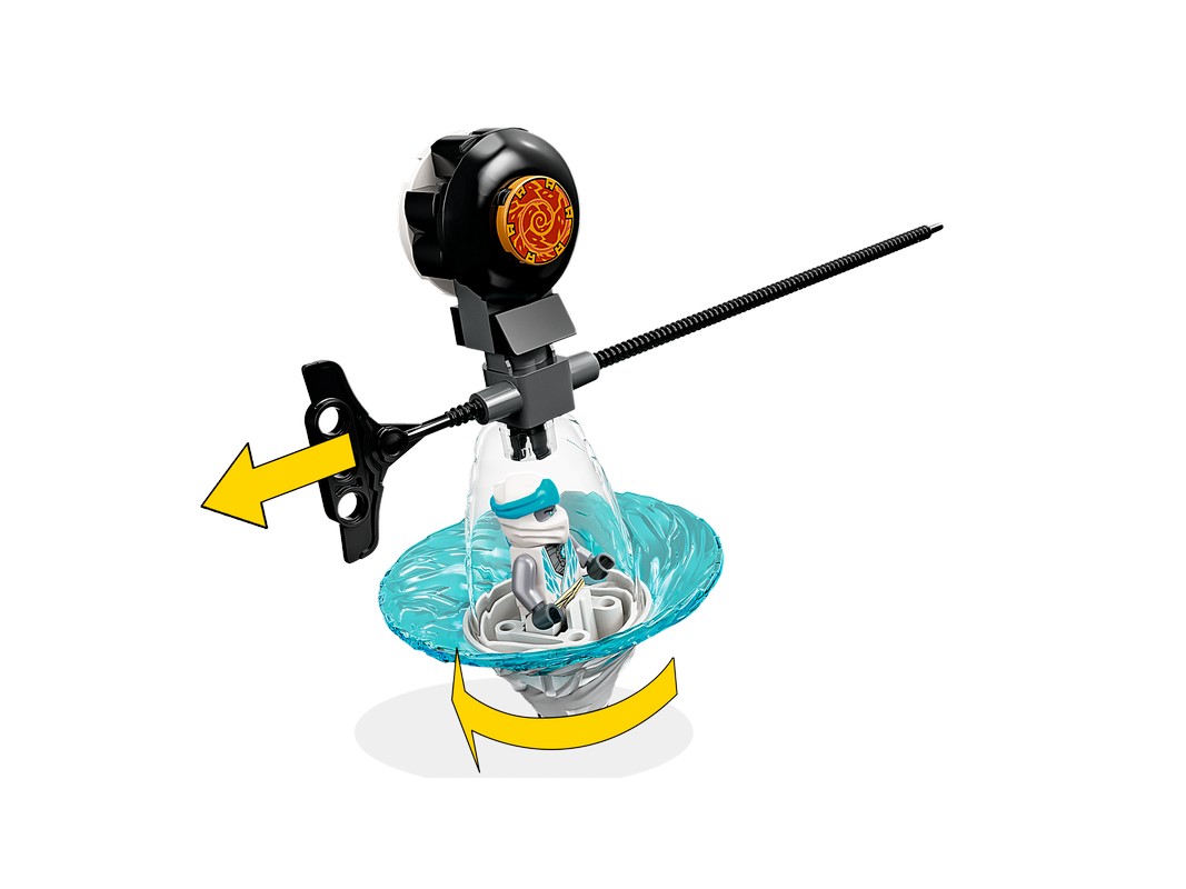 - Приключения с вращением — поместив ниндзя в волчок, дети могут потянуть шнур и наблюдать, как ниндзя проходит серию испытаний, включая прыжки через яму со змеями и бой с тренировочным роботом