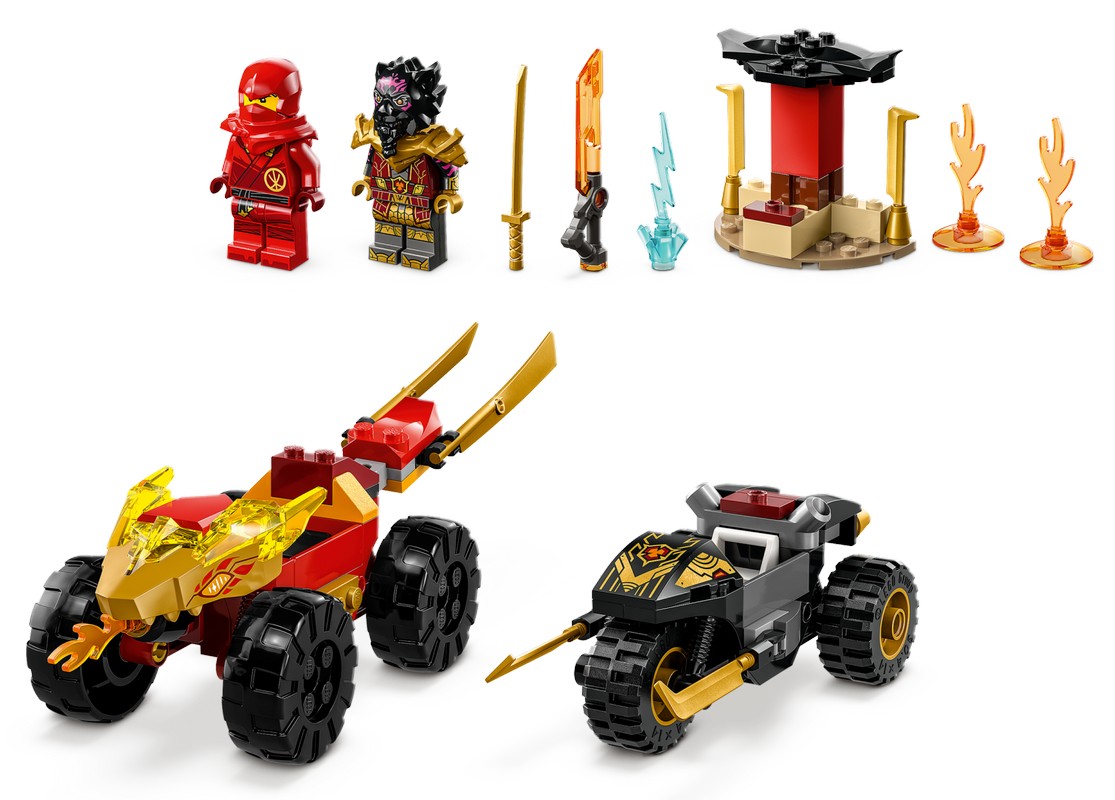 Описание 71789 Лего Битва Кая и Рэя на машине и мотоцикле: