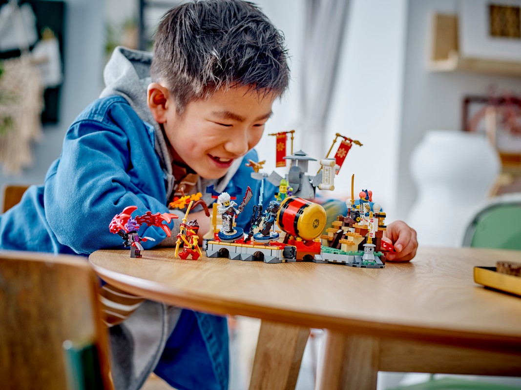 - Игровой набор NINJAGO® battle для дети – мальчики и девочки в возрасте от 7 лет и старше - могут воссоздать удивительные сцены из 2-го сезона телешоу "Восстание драконов НИНДЗЯГО" с помощью интерактивной ролевой игрушки "Турнирная боевая арена". – Игрушка-трансформер "Арена" включает в себя 2 движущиеся платформы, на которые дети могут поместить ниндзя и злодея, чтобы разыграть захватывающие сражения.