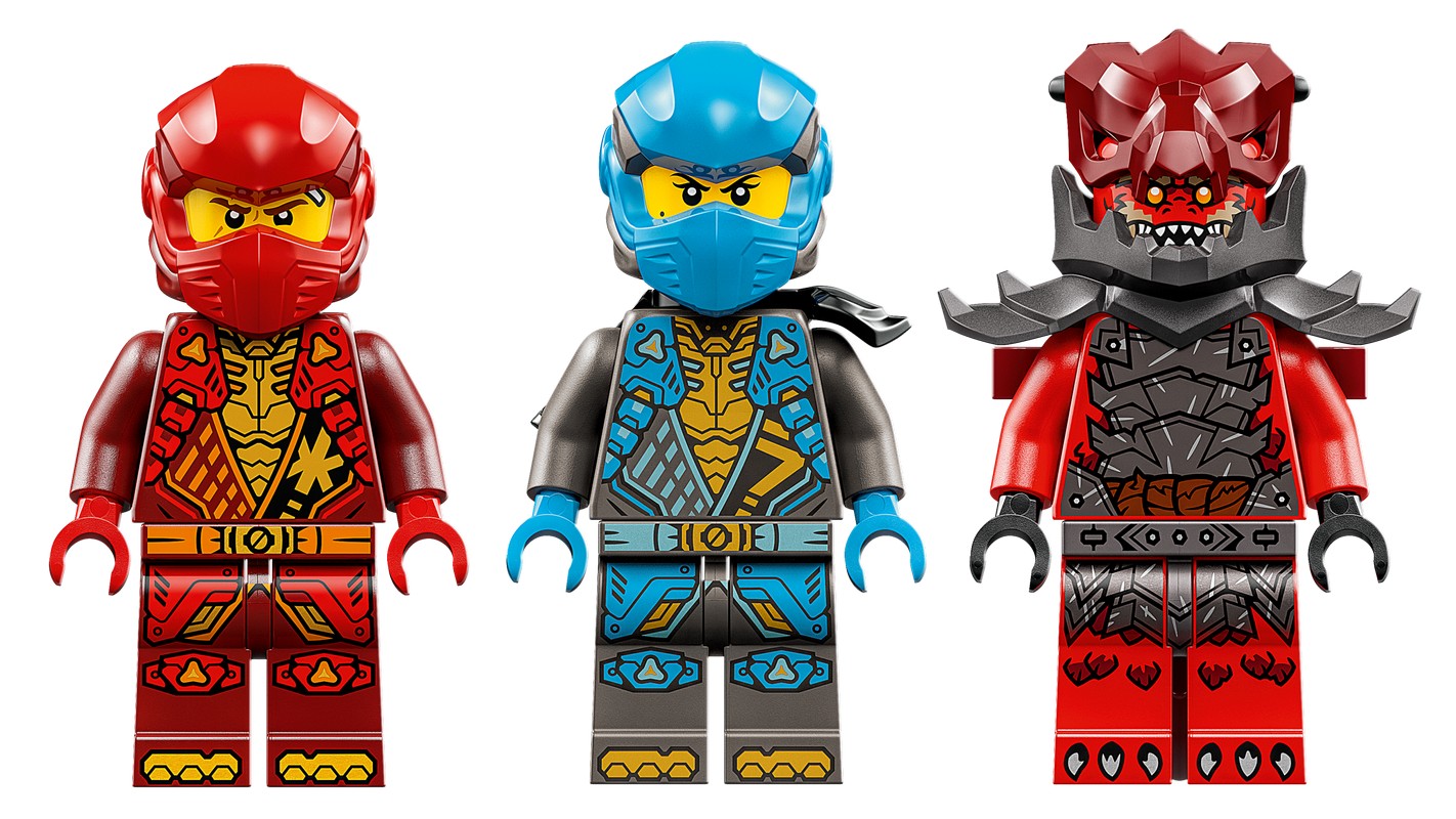 - В игровом наборе 3 минифигурки NINJAGO® - Кай, Ния и воин-дракон., все с аксессуарами для оружия, чтобы дети могли участвовать в эпических битвах.