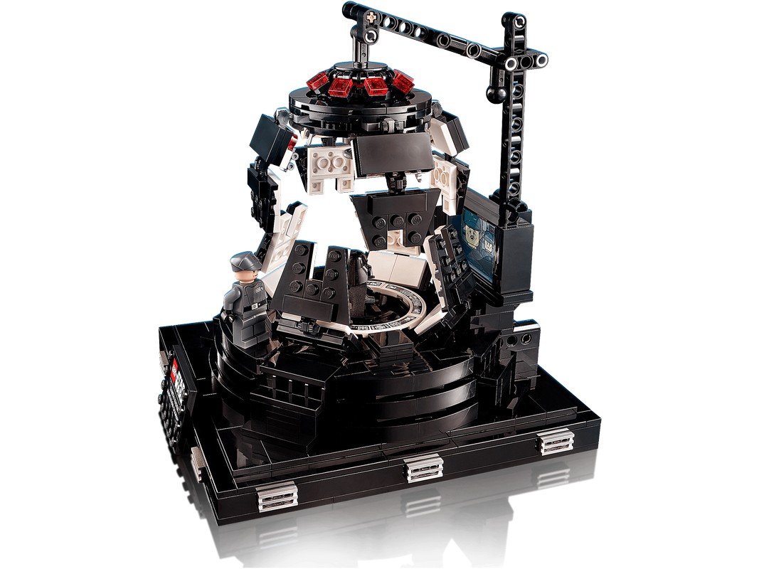 - Камера открывается и закрывается, как настоящая, и в ней есть вращающееся кресло для Дарта Вейдера, большой экран, панели управления, место, на котором может стоять генерал Вирс, и табличка с названием.