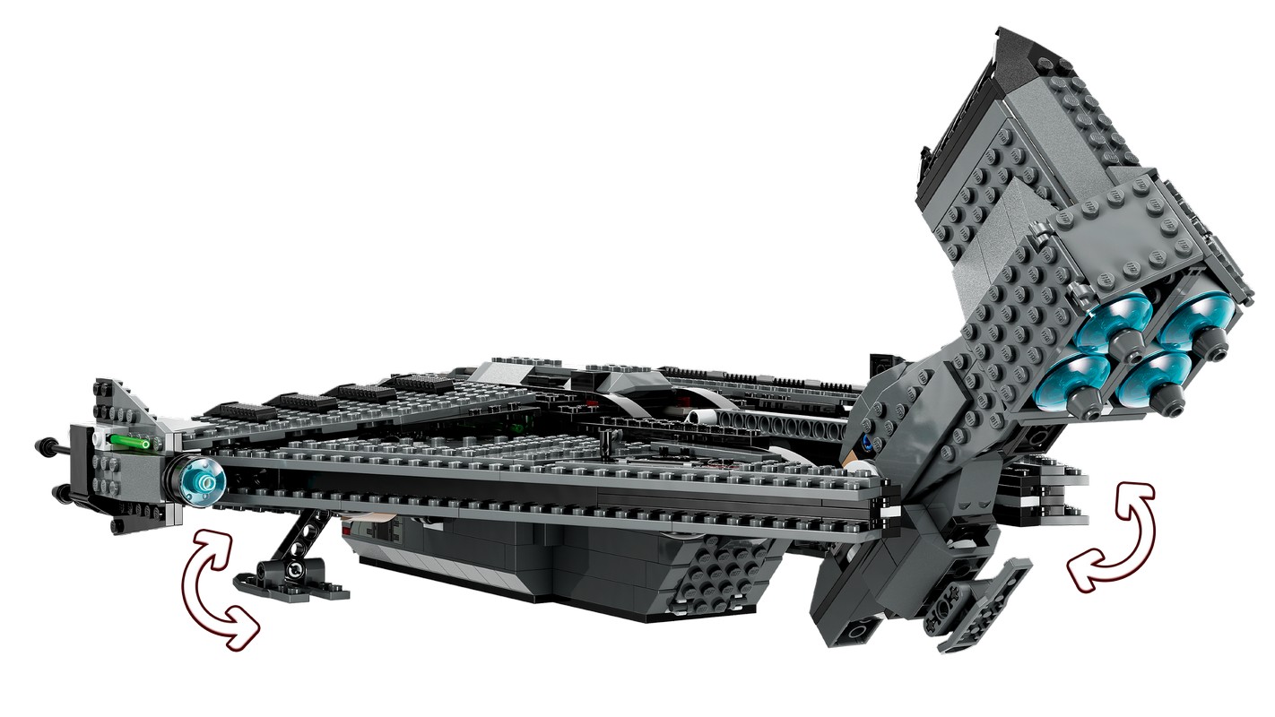 - Режимы полета и посадки – Сложите задний двигатель звездолета охотника за головами Кэда Бэйна для режима полета и сложите его, чтобы автоматически развернуть шасси