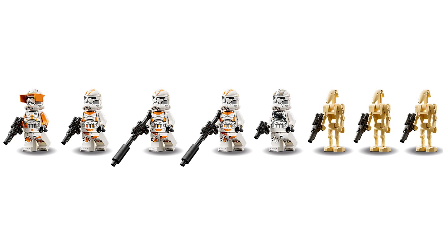 В набор входят 5 минифигурок LEGO – коммандер Коди, 212–й стрелок-клон и 3 212-го солдата-клона - для противостояния 3 фигурки боевых дроидов LEGO и собираемый дроид-карлик-паук, а также разнообразное крутое оружие. Инструкции по сборке можно найти в коробке и в приложении LEGO Building Instructions, в котором есть интерактивные инструменты просмотра для улучшения творческого процесса.