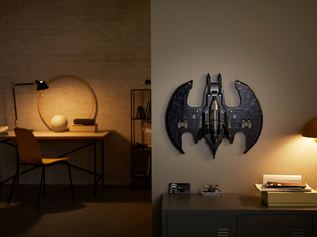 - «Бэтвинг 1989» LEGO® DC BATMAN™ размером чуть более 11 см в высоту, 52 см в ширину и58 см в длину великолепно смотрится на подставке или на стене.