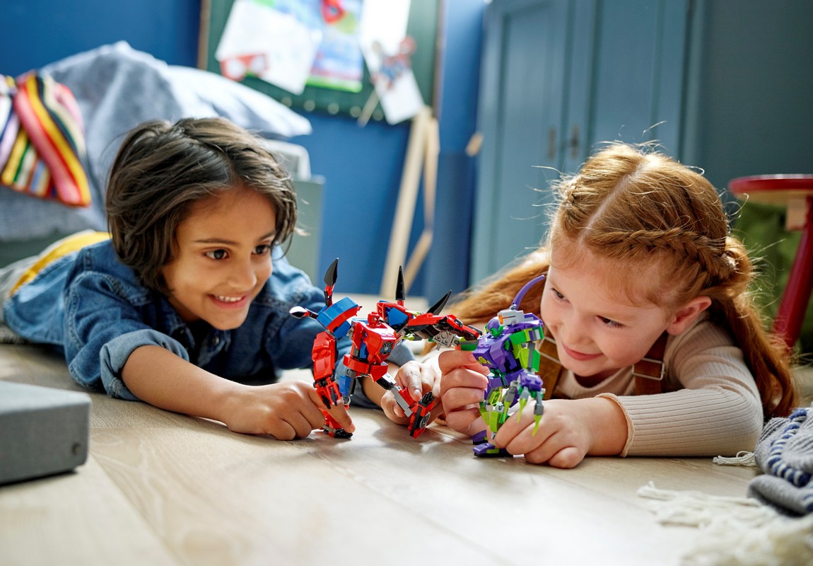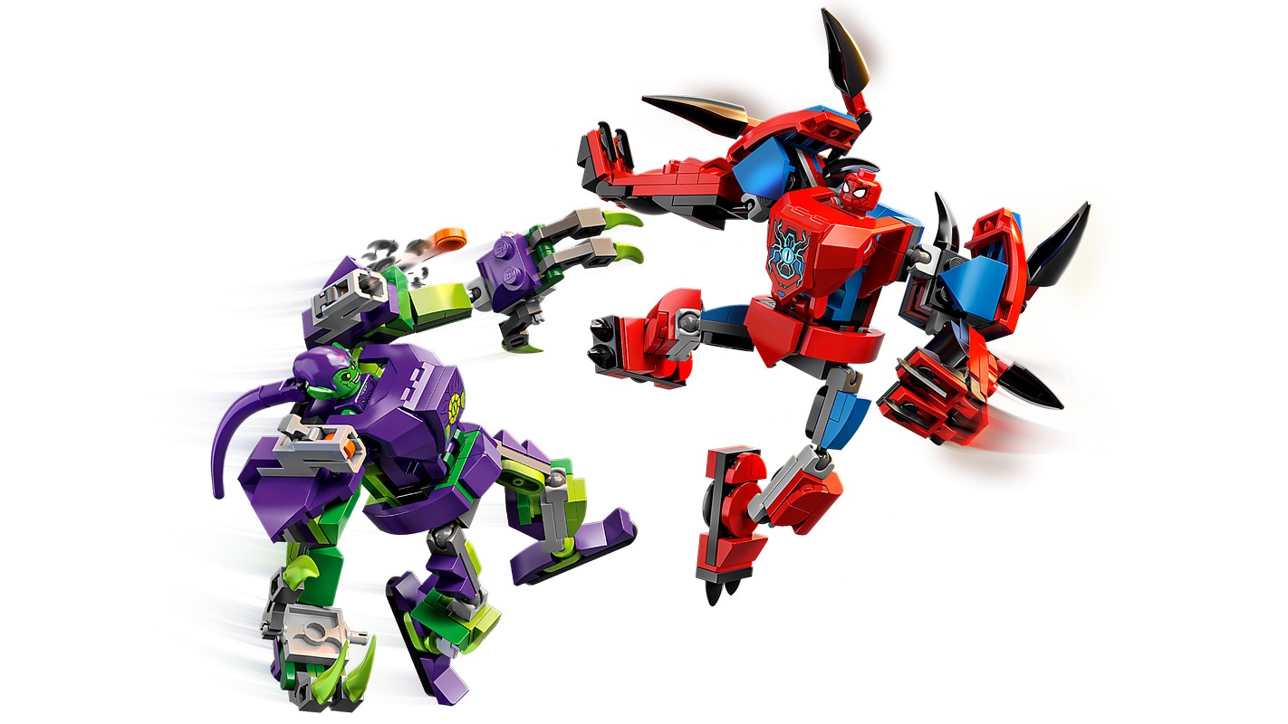 - Знаменитые персонажи Marvel — в наборе есть минифигурки Человека-паука и Зелёного Гоблина и их роботы: каждый из них больше и воинственнее, чем когда-либо прежде