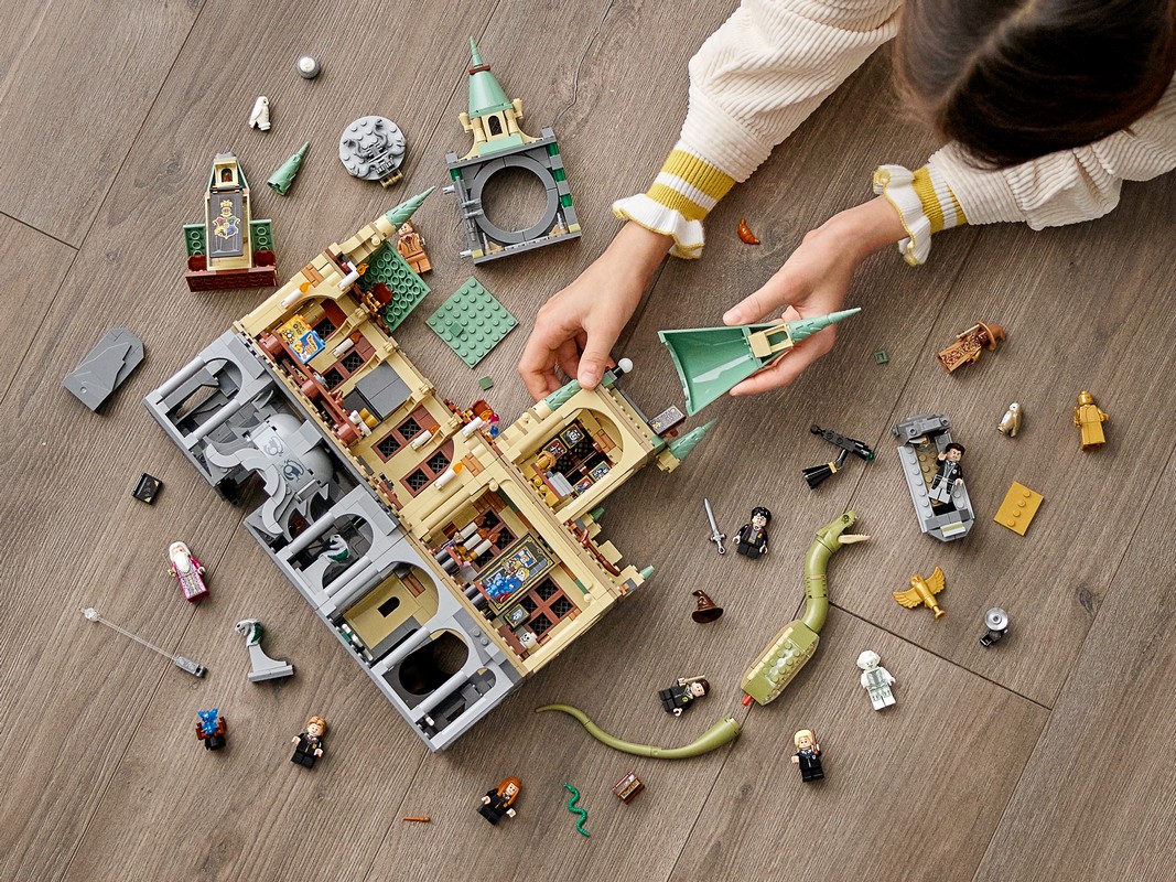 Этот универсальный набор включает в себя хорошо известные помещения, волшебные элементы и знакомых персонажей из фильмов про Гарри Поттера. В Большом зале стоят 2 длинных стола, кафедра Дамблдора с золотой совой, и есть аутентичные аксессуары — например, Распределяющая шляпа. Как и в фильмах, в Тайную комнату ведет знаменитый круглый проход и есть большая статуя с открывающимся ртом. За ней открывается коридор, откуда в комнату попадает змей-василиск. В набор включены 10 минифигурок, вдохновляющих на творческую игру и демонстрацию: Гарри Поттер, Джинни Уизли, Том Реддл, Колин Криви, Джастин Финч-Флетчли, Полумна Лавгуд, Златопуст Локонс, Альбус Дамблдор, профессор Синистра и Почти Безголовый Ник. Есть и коллекционные элементы: эксклюзивная золотая юбилейная минифигурка Волан-де-Морта и 6 случайных плиток-карточек волшебников.
