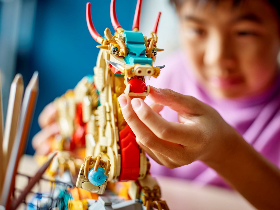 - Игрушечная фигурка дракона LEGO® Spring Festival – Отпразднуйте Год дракона с помощью этой красочной модели, выполненной из кирпича. дети в возрасте от 10 лет и старше